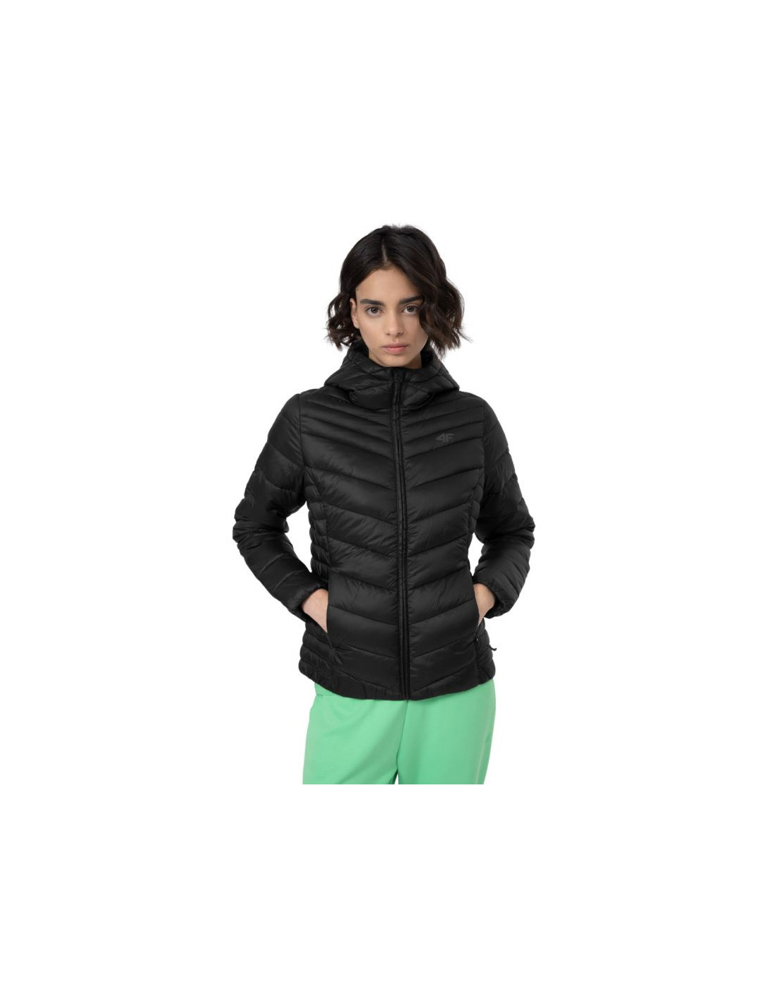 - Postaw na modną klasykę i niezawodny komfort, który oferuje damska puchowa kurtka 4F.