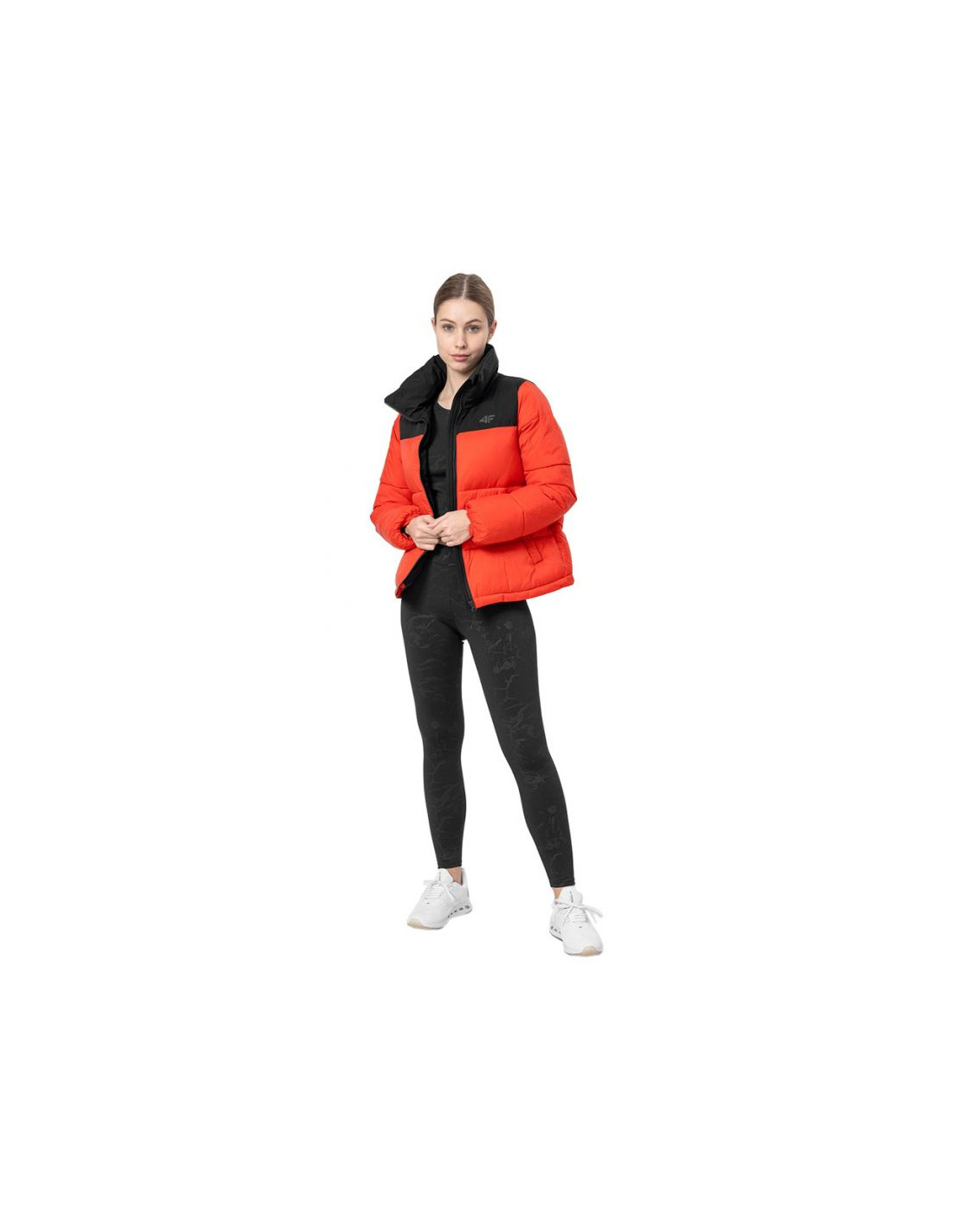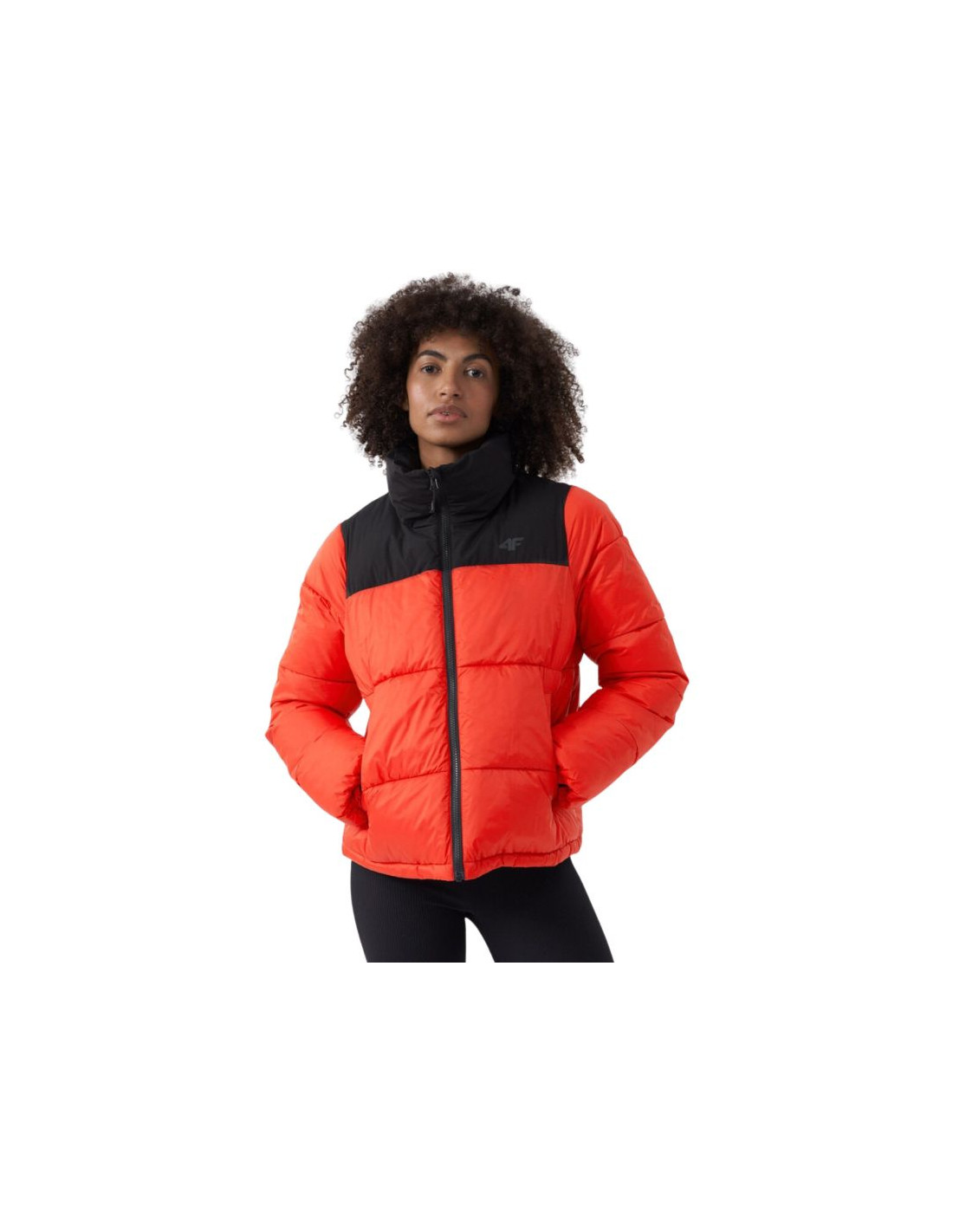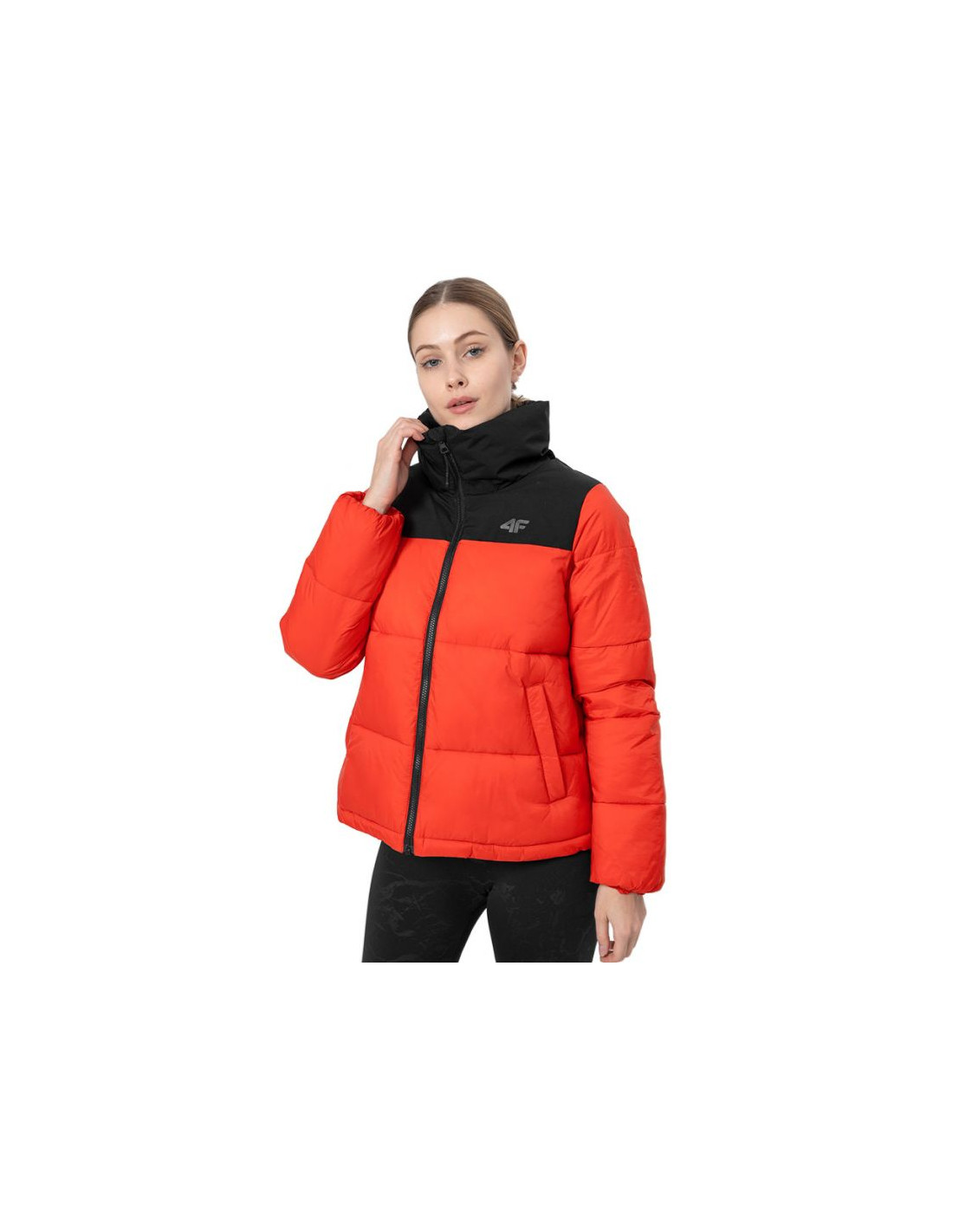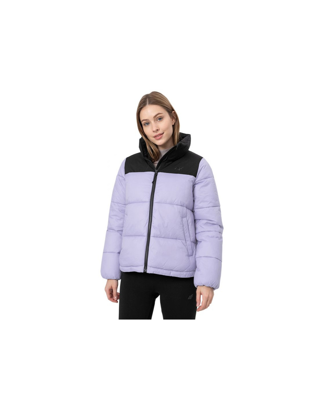 - Kurtka dla kobiet 4F posiada wypełnienie z puchu syntetycznego, dzięki czemu zapewnia optymalny komfort cieplny w chłodniejsze dni.