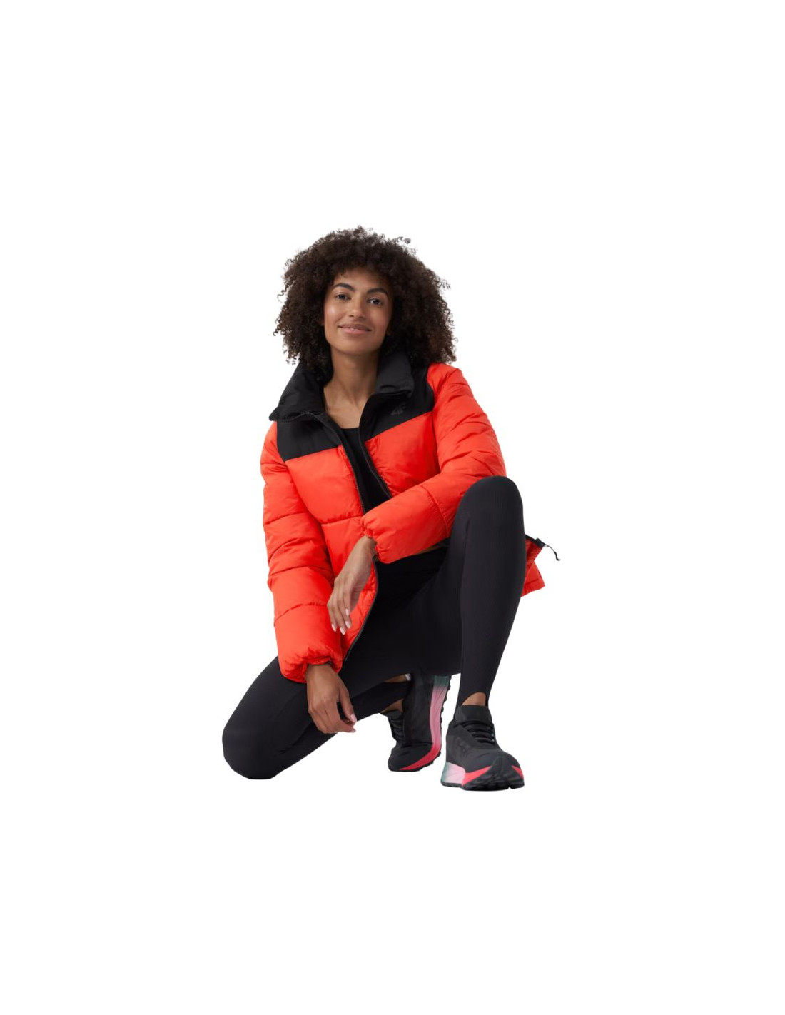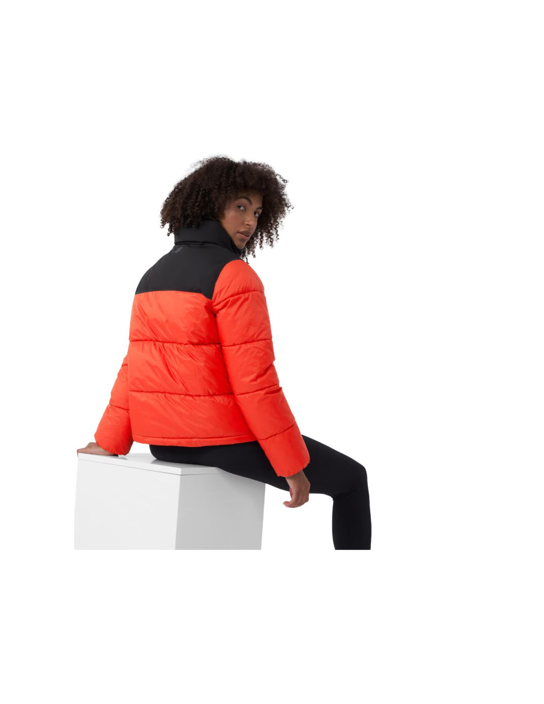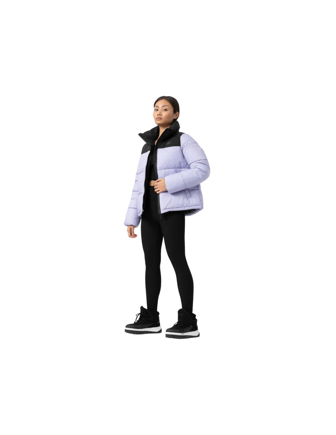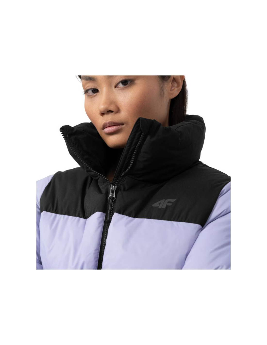 - Kurtka dla kobiet 4F posiada wypełnienie z puchu syntetycznego, dzięki czemu zapewnia optymalny komfort cieplny w chłodniejsze dni.