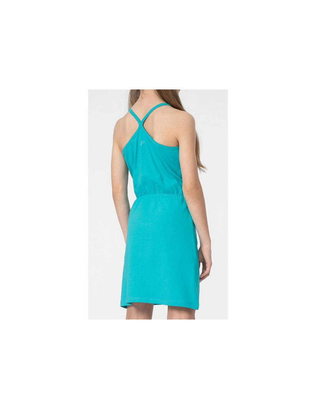Sukienka 4F Jr 4FJSS23TDREF026 46S Właściwości: Damska sukienka 4F. Fason na ramiączkach. Gumka w tali dla lepszego dopasowania Dolna część lekko rozkloszowana Materiał: 96% bawełna, 4% elastan Kolor: zielony Płeć: Dzieci Sport: Lifestyle Model:...