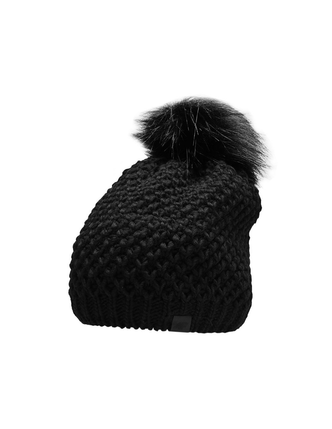 Czapka damska 4F głęboka czerń H4Z22 CAD014 20S Czapka dla kobiet 4F pomaga zachować komfort termiczny podczas chłodnych dni. Niewielkie logo. Miękki materiał. Elastyczny krój z pomponem. Dane techniczne:· materiał główny: 75% akryl, 25% wełna· rozmiar (obwód głowy): S (50-54 cm), M (54-58 cm)
