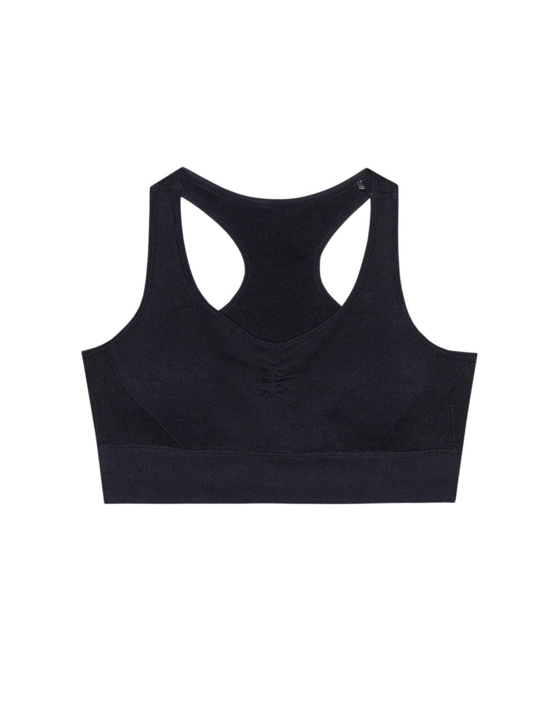 - Miękka i wytrzymała dzianina interlock o gładkiej strukturze po obu stronach. Okrągły dekolt. Miękkie, wyjmowane miseczki. Elastyczny ściągacz pod biustem ściśle przylega do ciała. Bokserski tył. Szerokie ramiączka bez regulacji. Szybkoschnące włókna w technologii 4FDry odprowadzają wilgoć. Bezszwowa konstrukcja.