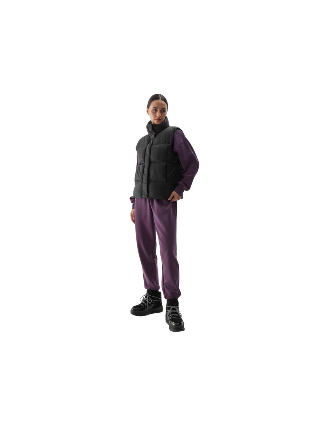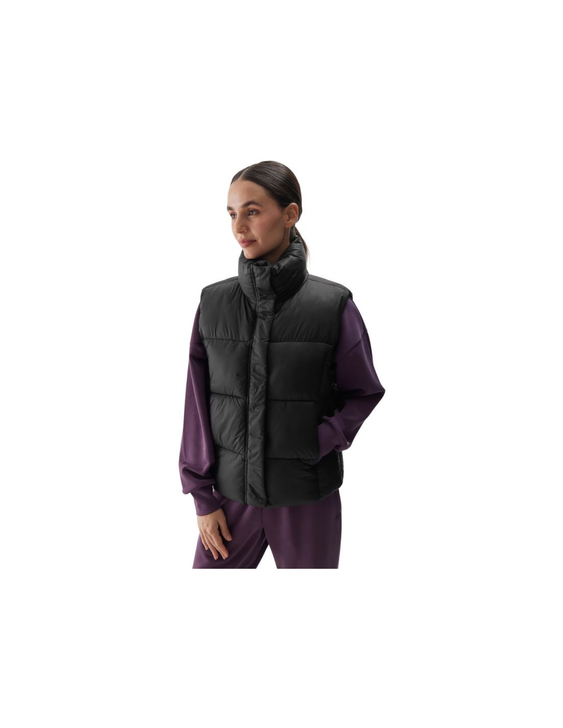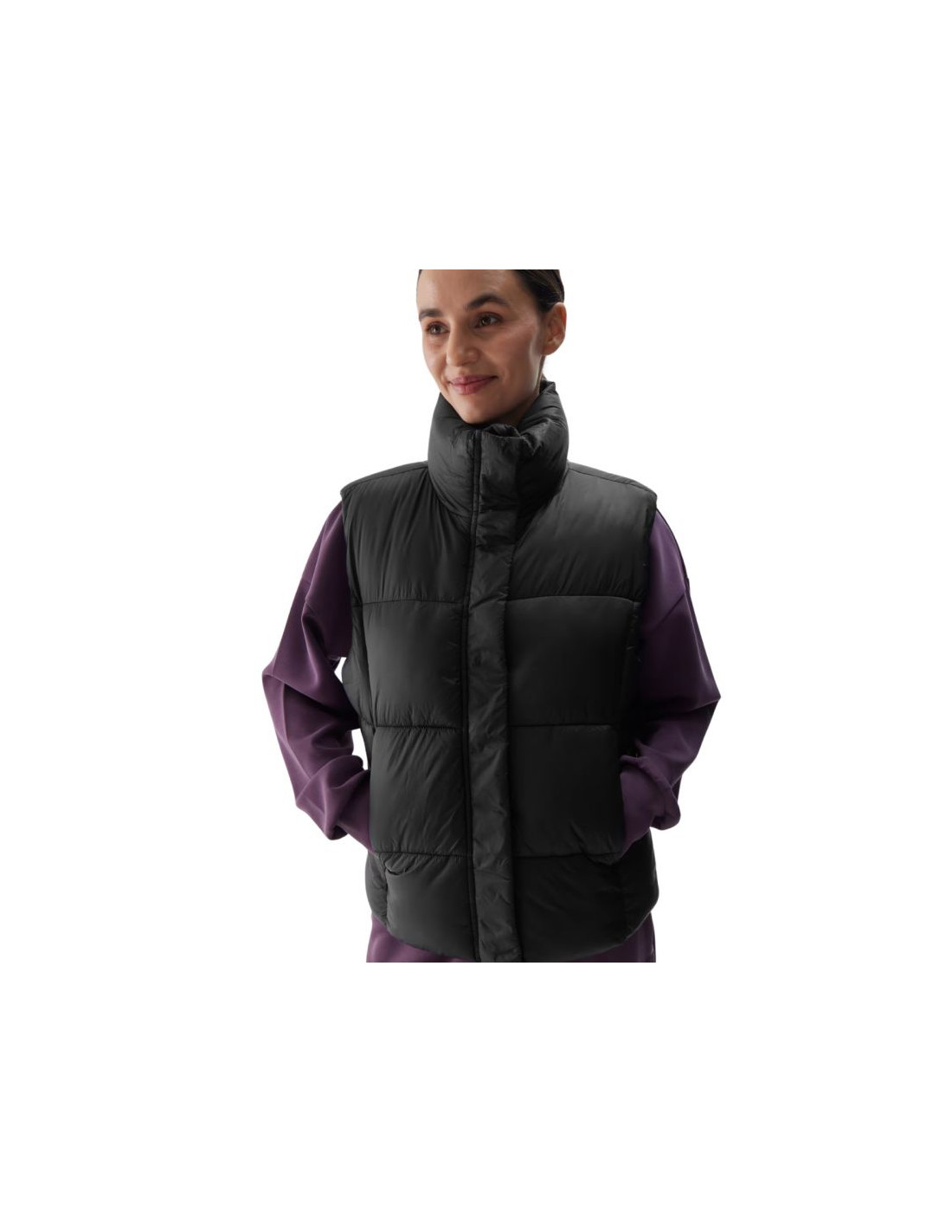 Kamizelka damska 4F F140 głęboka czerń 4FWAW24TVJAF140 Kamizelka damska 4F sprawdzi się w okresie przejściowym. Krój oversize luźno układa się na sylwetce i zapewnia swobodę. Fason sięgający do bioder. Gładka, poliestrowa podszewka. Hydrofobowa powłoka materiału zewnętrznego ogranicza wchłanianie wilgoci. Wysoki kołnierz. 2 otwarte kieszenie boczne. Jednokierunkowy zamek główny z wewnętrzną plisą przeciwwiatrową. Regulacja obwodu dołu za pomocą tunelowego ściągacza ze stoperami. Wykonana z materiału syntetycznego, który jest trwały i łatwy w pielęgnacji. Wypełnienie z puchu syntetycznego zapewnia odpowiednie właściwości izolacyjne nawet w wilgotnych warunkach.