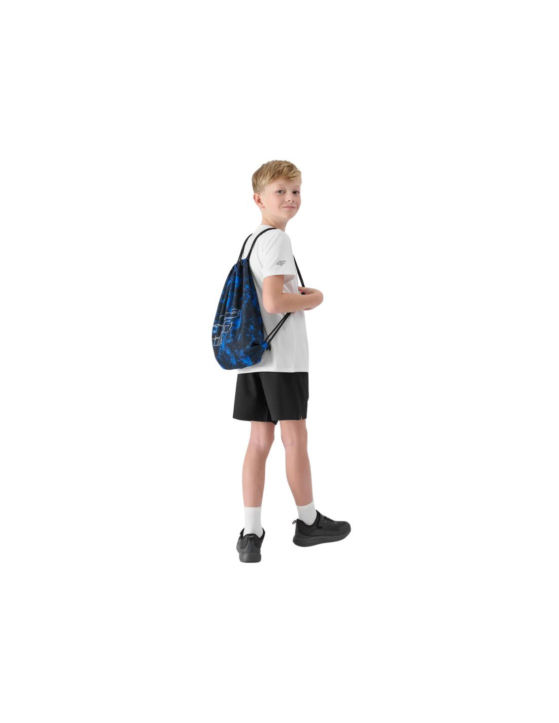 - Komplet dla chłopca 4F zawiera koszulkę, spodenki i worek na buty.