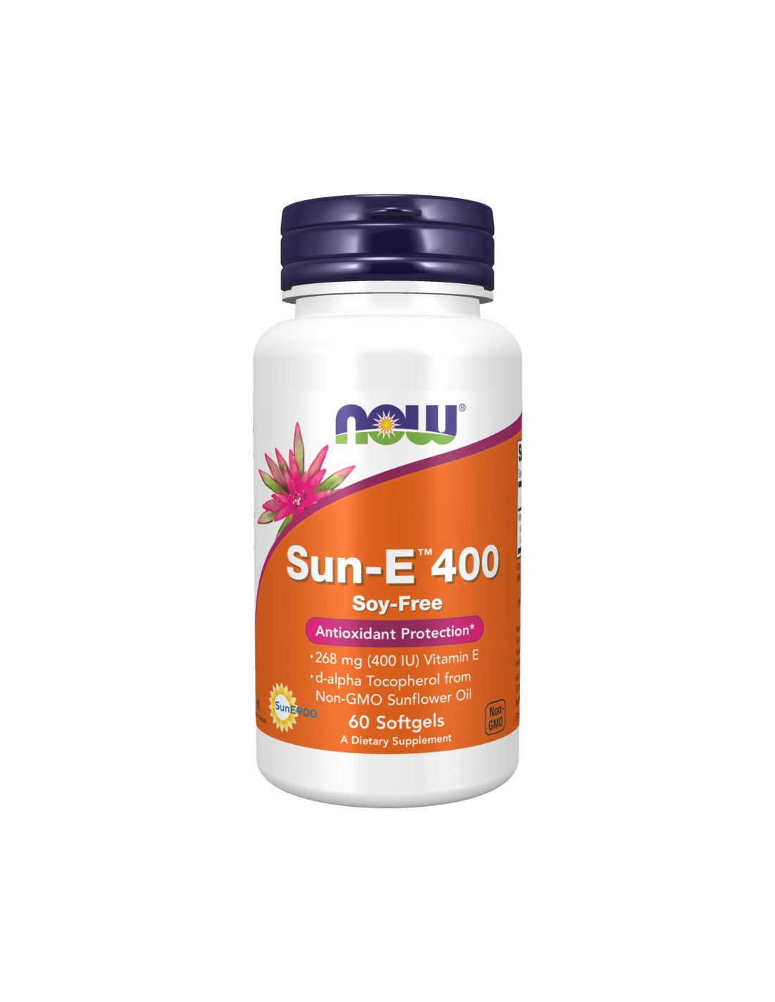 Sun-E™400 marki NOW® zawiera witaminę E, ważną dla wielu różnych procesów organizmu, wspierającą ogólne zdrowie i dobre samopoczucie.
