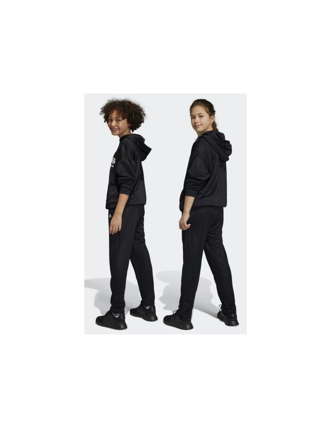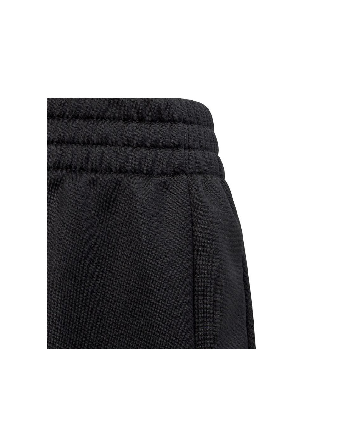- Czarne spodnie z kontrastowymi paskami i logo adidas.