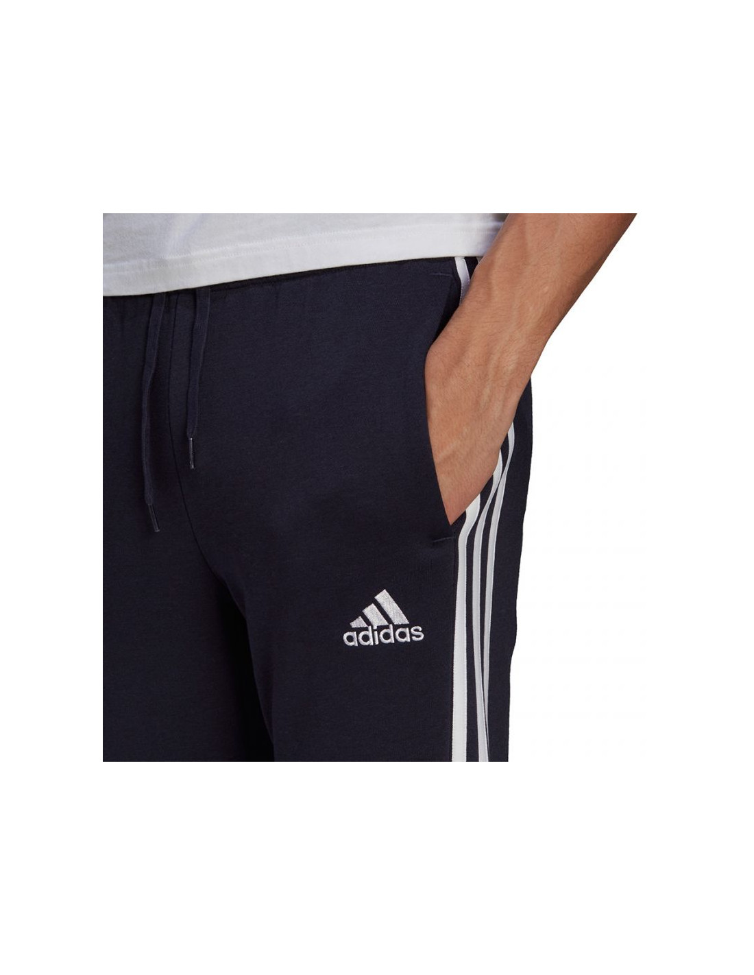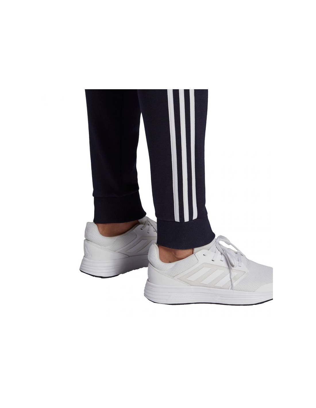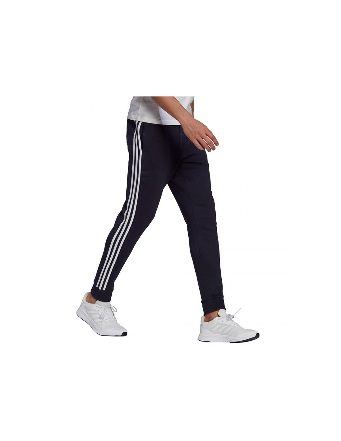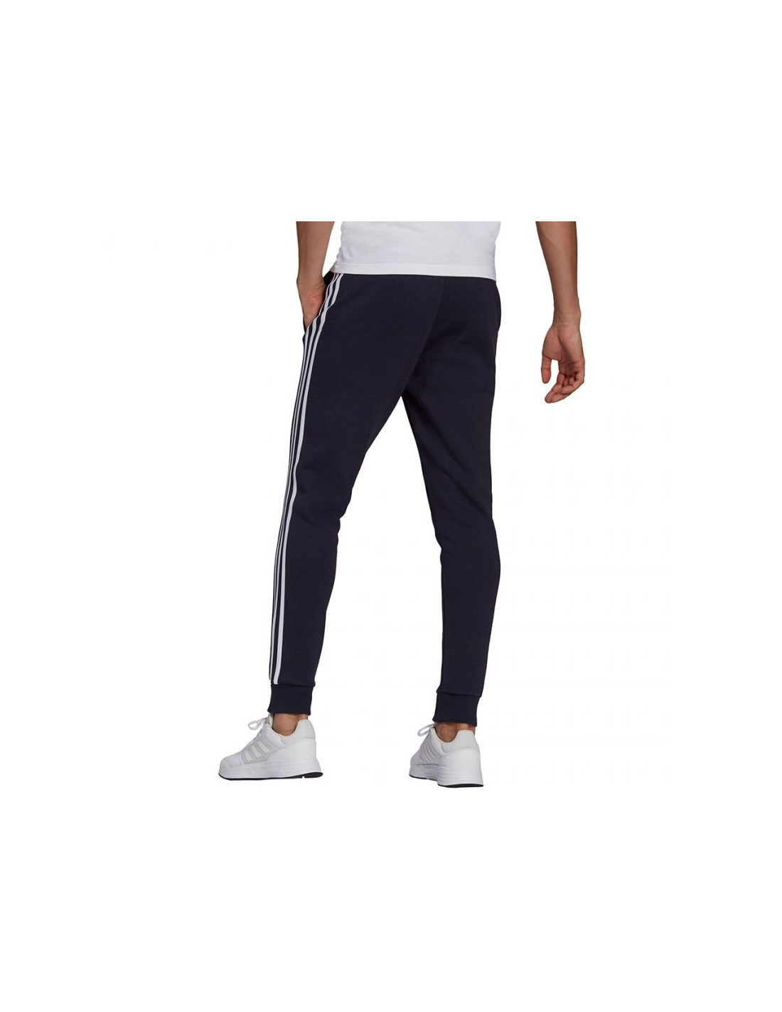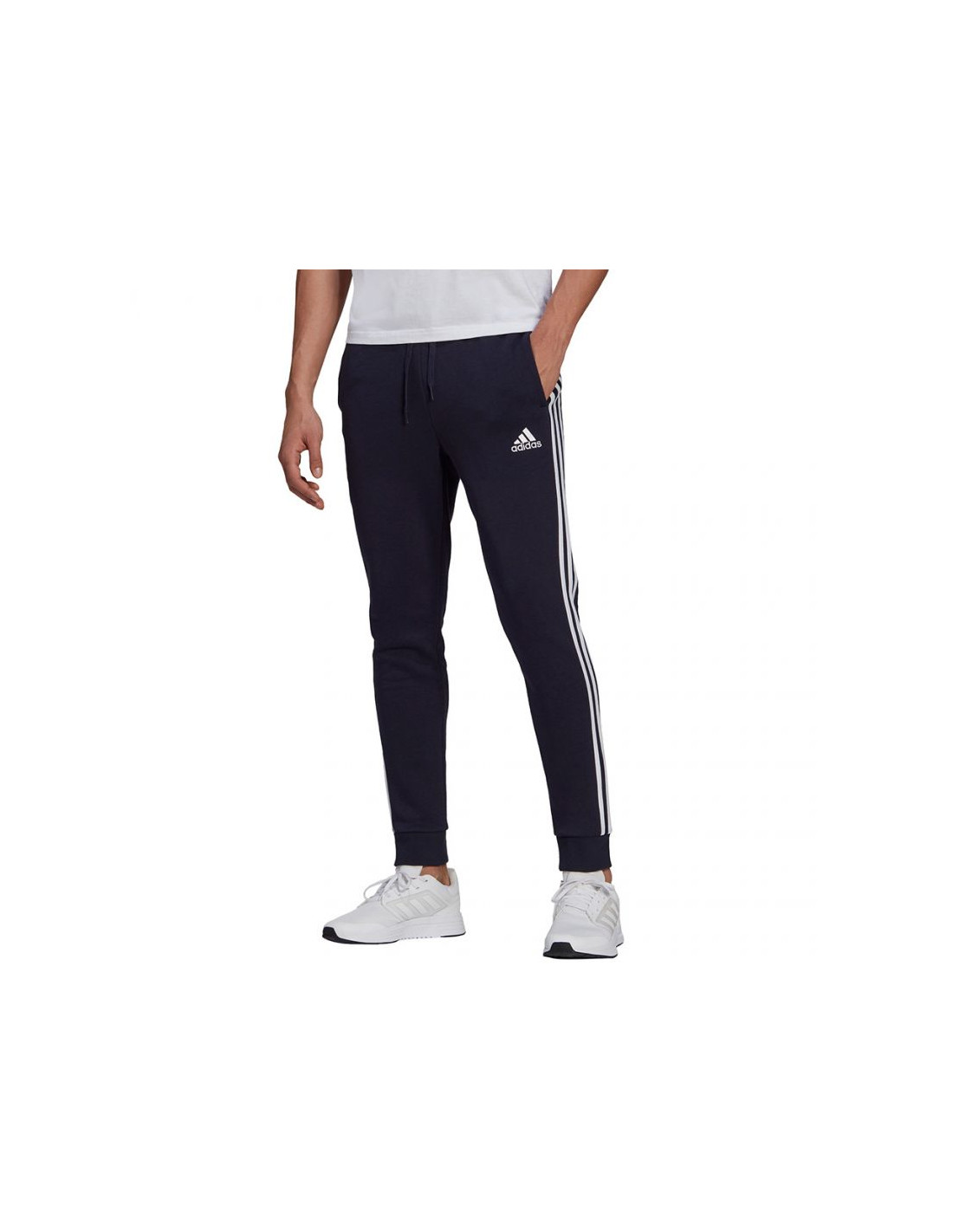 Spodnie męskie adidas Essentials Fleece Tapered Cuff 3-Band Pants granatowe GK8823