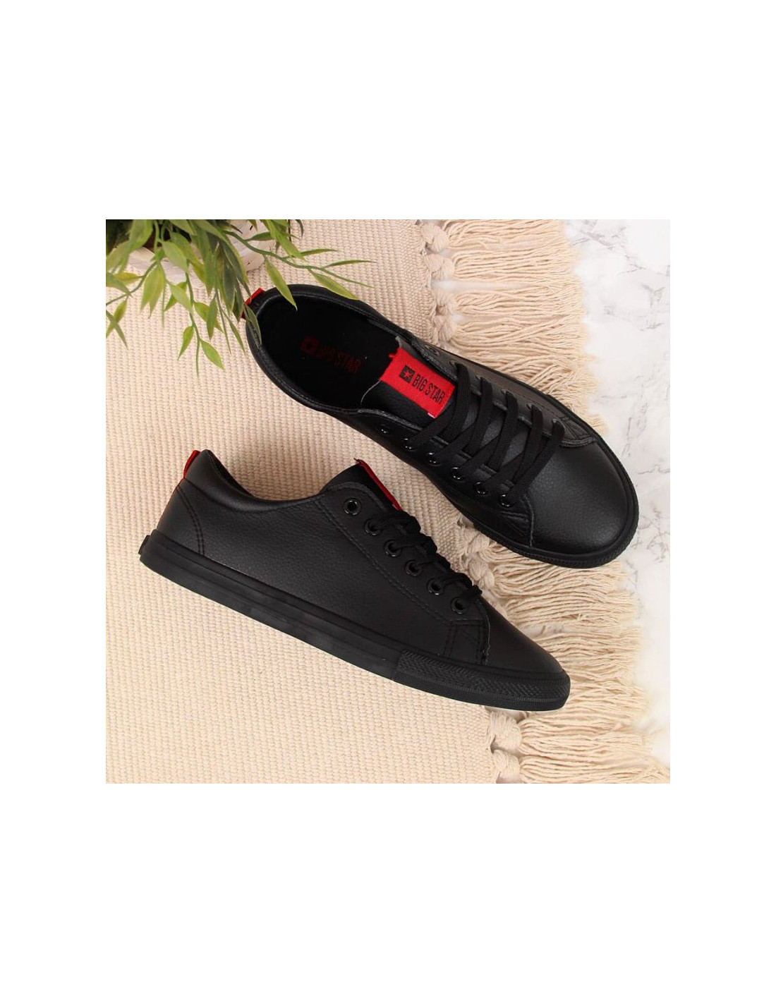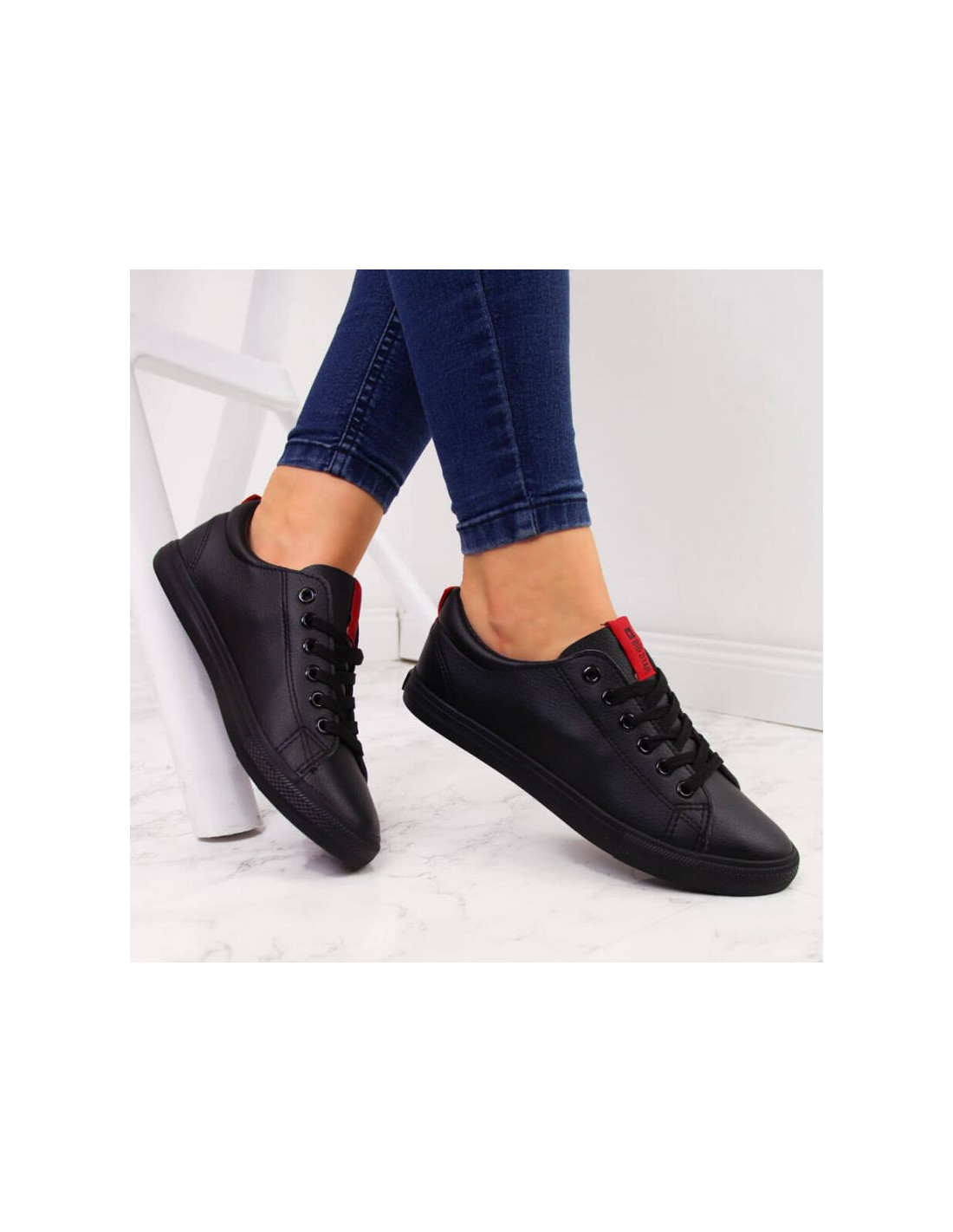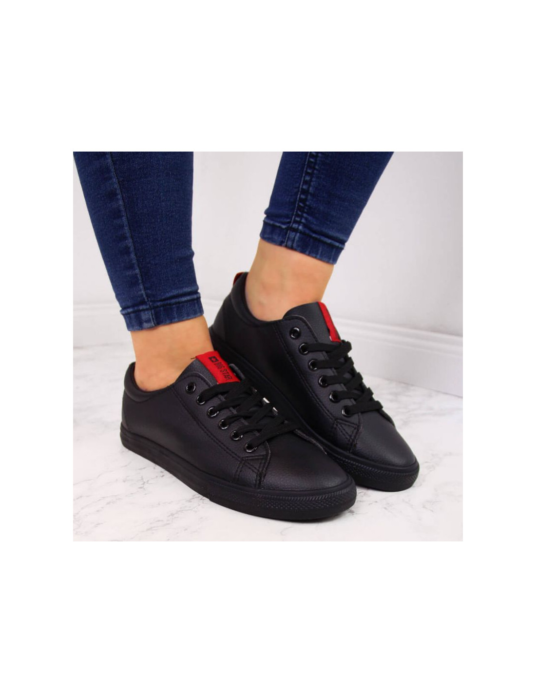 Trampki niskie z eko skóry Big Star W DD274687 czarne Właściwości:buty marki Big Stardoskonałe na co dzieńdla kobietniski modelzapinany na sznurowadłasyntetyczna cholewkatekstylna wyściółkagumowa podeszwalogo producentaMateriał:syntetycznyKolor:czarn