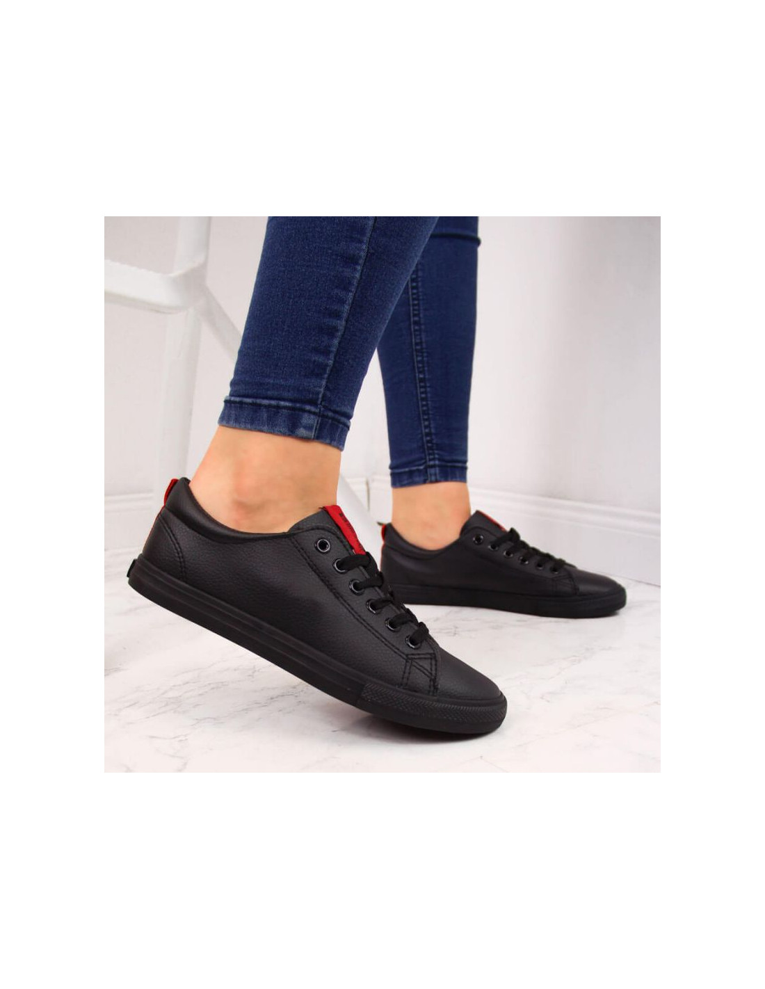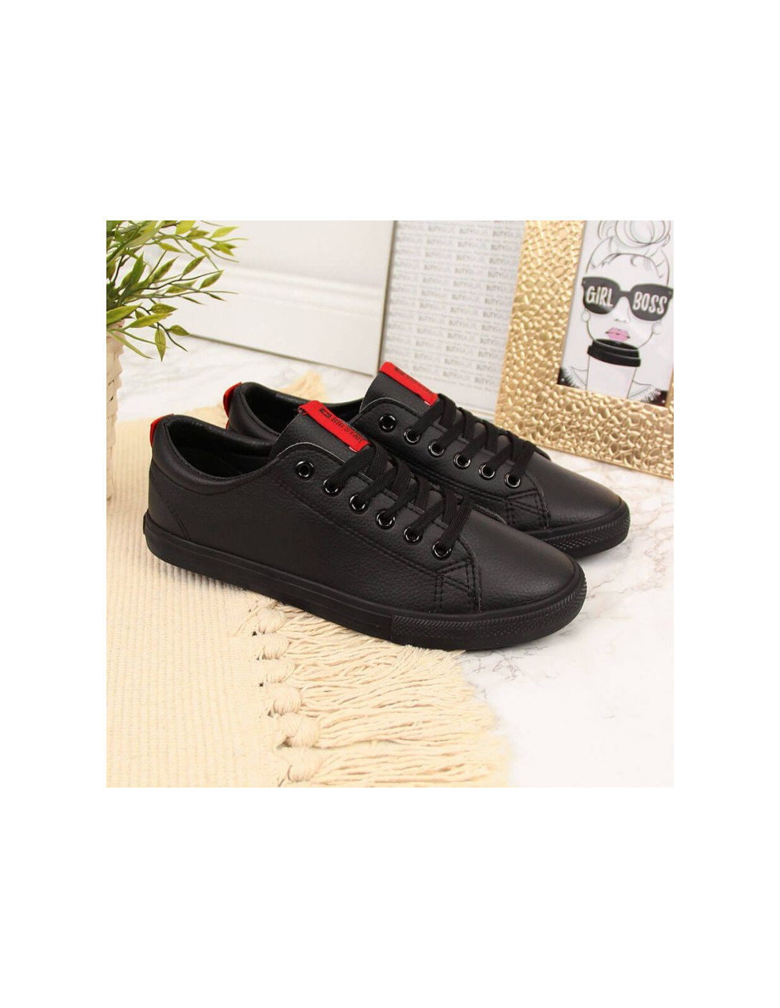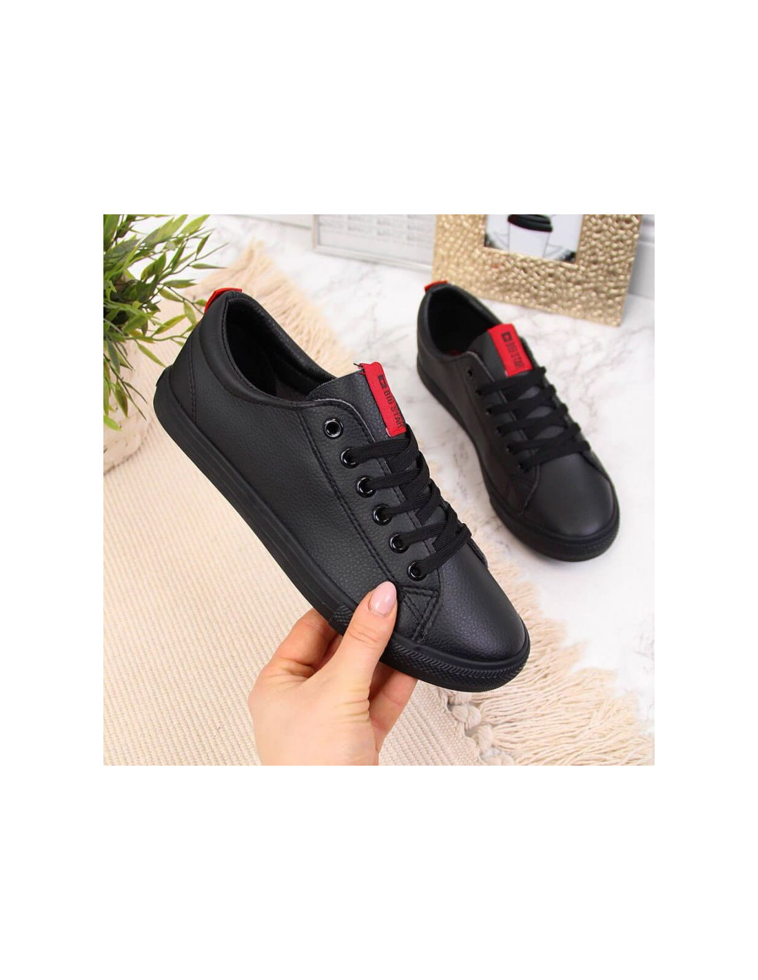 Trampki niskie z eko skóry Big Star W DD274687 czarne Właściwości:buty marki Big Stardoskonałe na co dzieńdla kobietniski modelzapinany na sznurowadłasyntetyczna cholewkatekstylna wyściółkagumowa podeszwalogo producentaMateriał:syntetycznyKolor:czarn