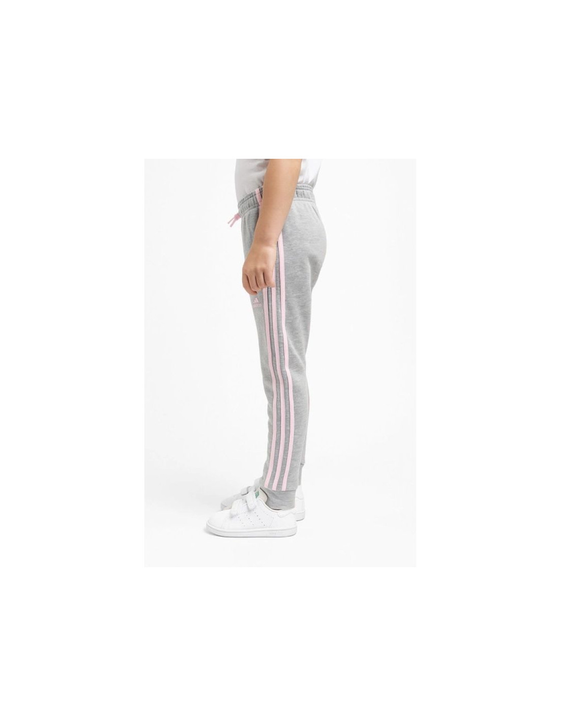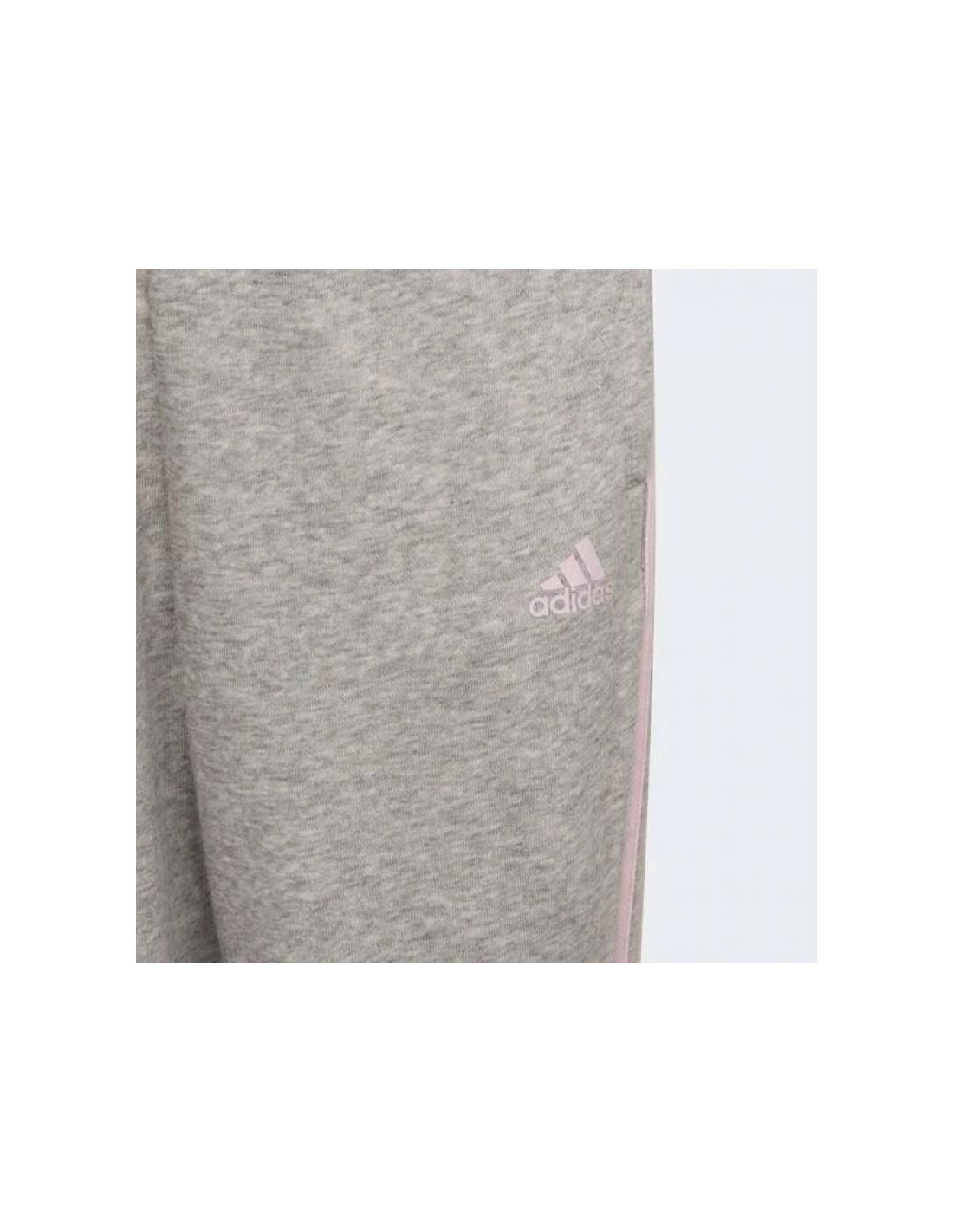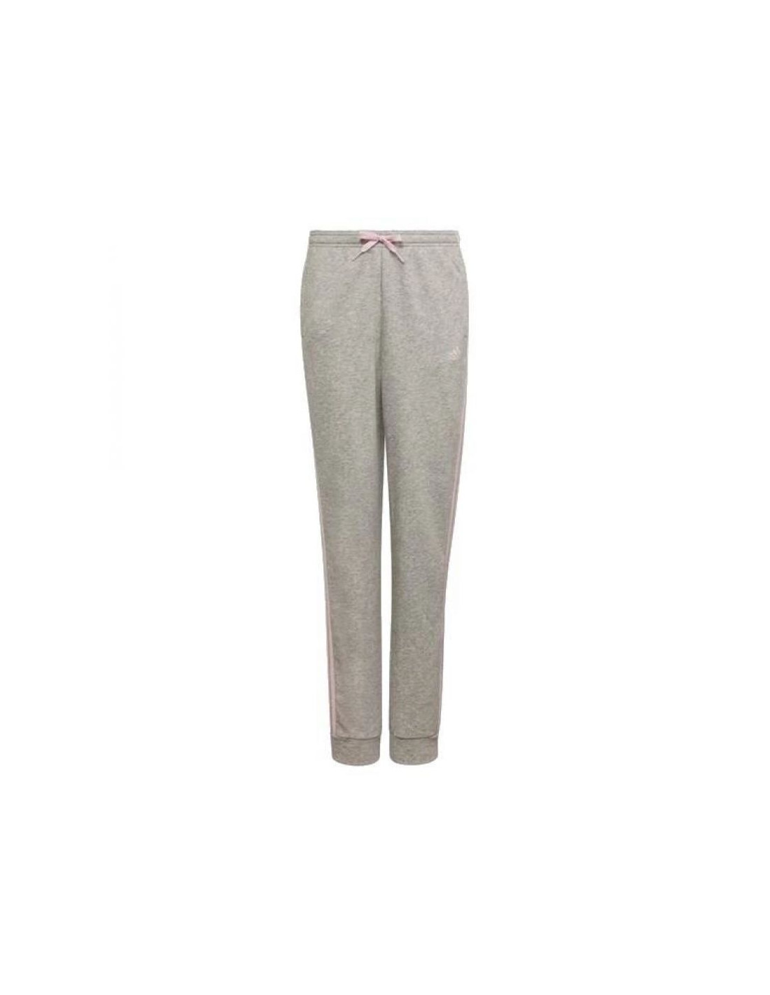 Spodnie adidas French terry 3 Jr HM8759 Właściwości: Modne spodnie dresowe marki Adidas w kolorze szarym z różowymi paskami i logiem. Materiał: 53% bawełna, 36% poliester pochodzący z recyklingu, 11% wiskoza. Klasyczny, dopasowany krój. Boczne...