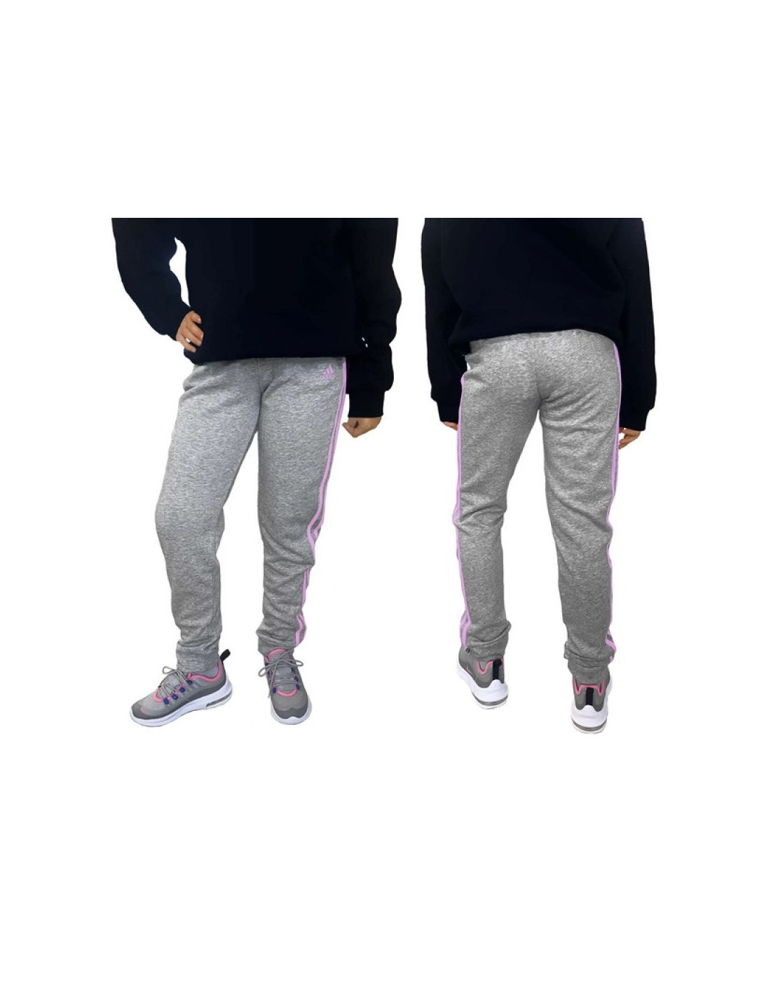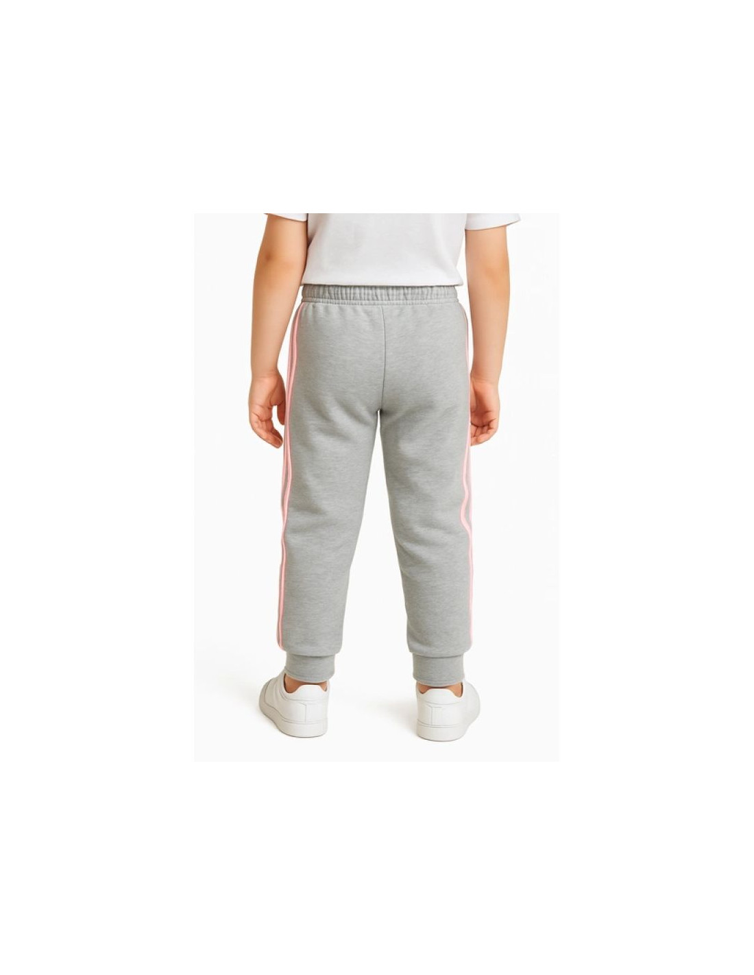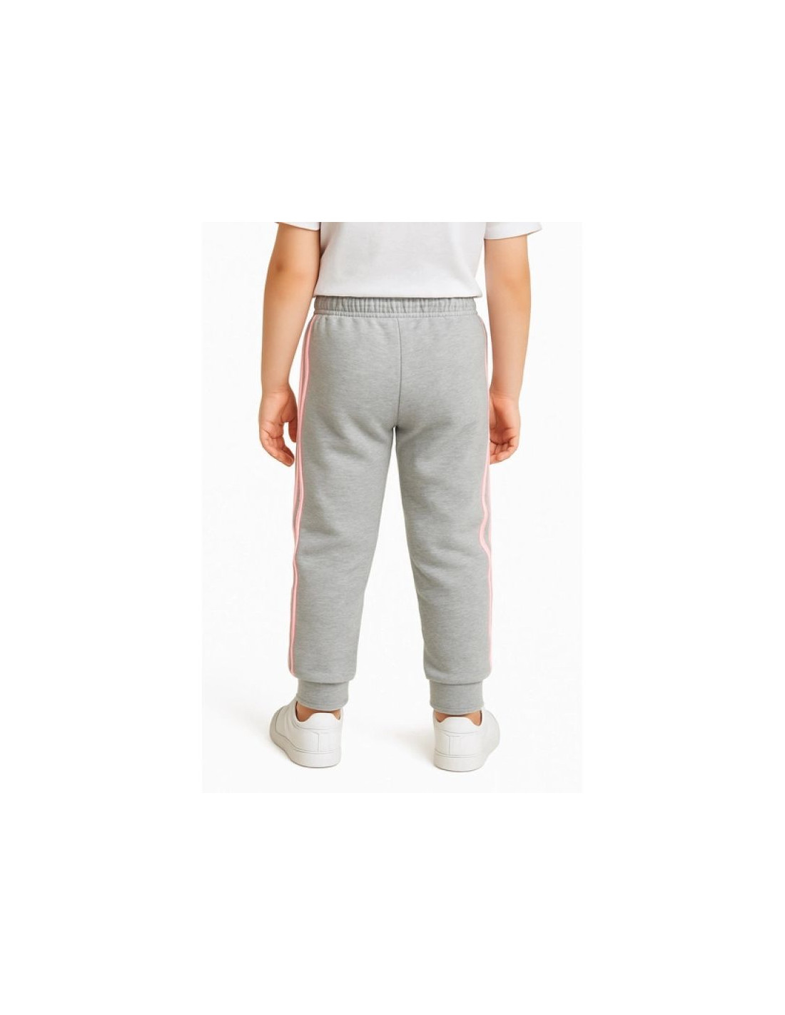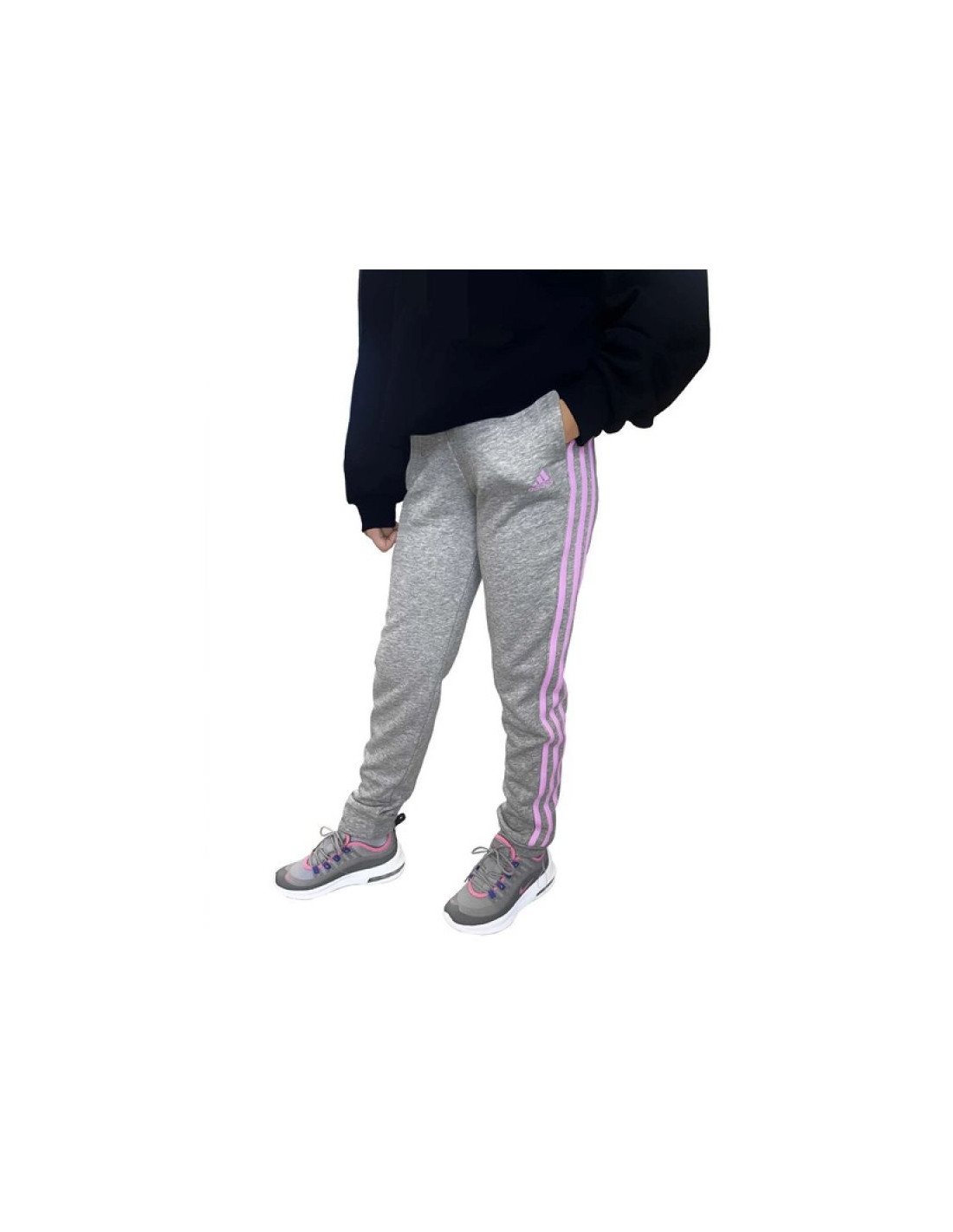 Spodnie adidas French terry 3 Jr HM8759 Właściwości: Modne spodnie dresowe marki Adidas w kolorze szarym z różowymi paskami i logiem. Materiał: 53% bawełna, 36% poliester pochodzący z recyklingu, 11% wiskoza. Klasyczny, dopasowany krój. Boczne...