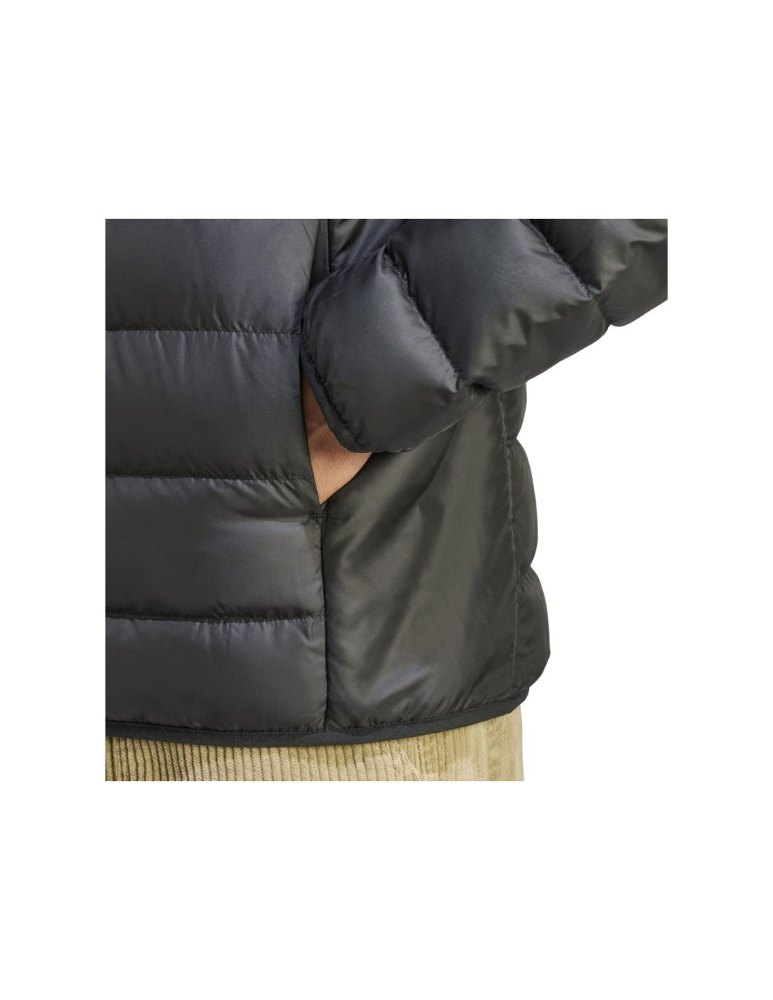 - Męska kurtka adidas tworzy izolację od zimna dzięki naturalnemu wypełnieniu, które zostało zamknięte w poziomych panelach.