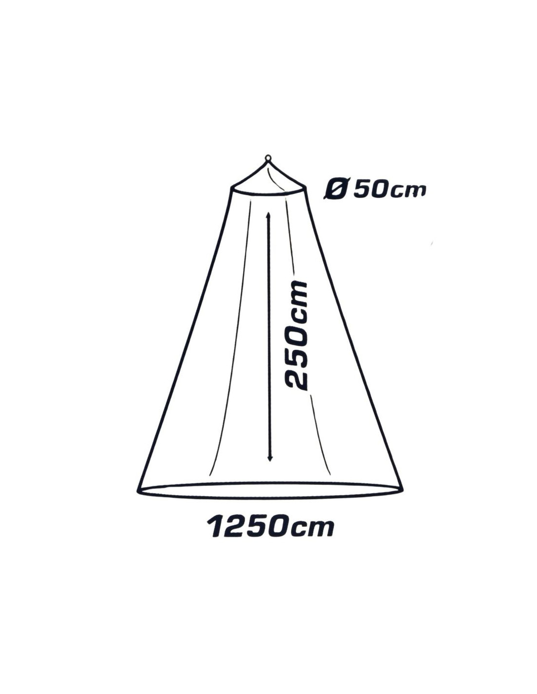 WYSOKOŚĆ 250CM - duża wysokość pozwala moskitierze swobodnie opadać wokół miejsca do spania. Zapewnia pełne osłonięcie przestrzeni. Nie powoduje uczucia ciasnoty.