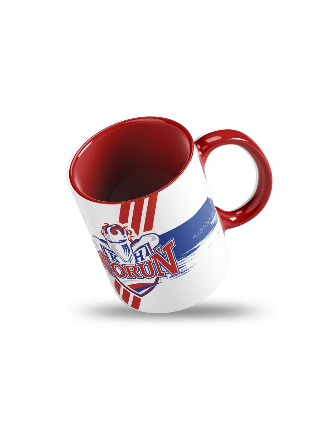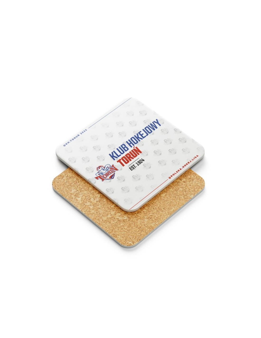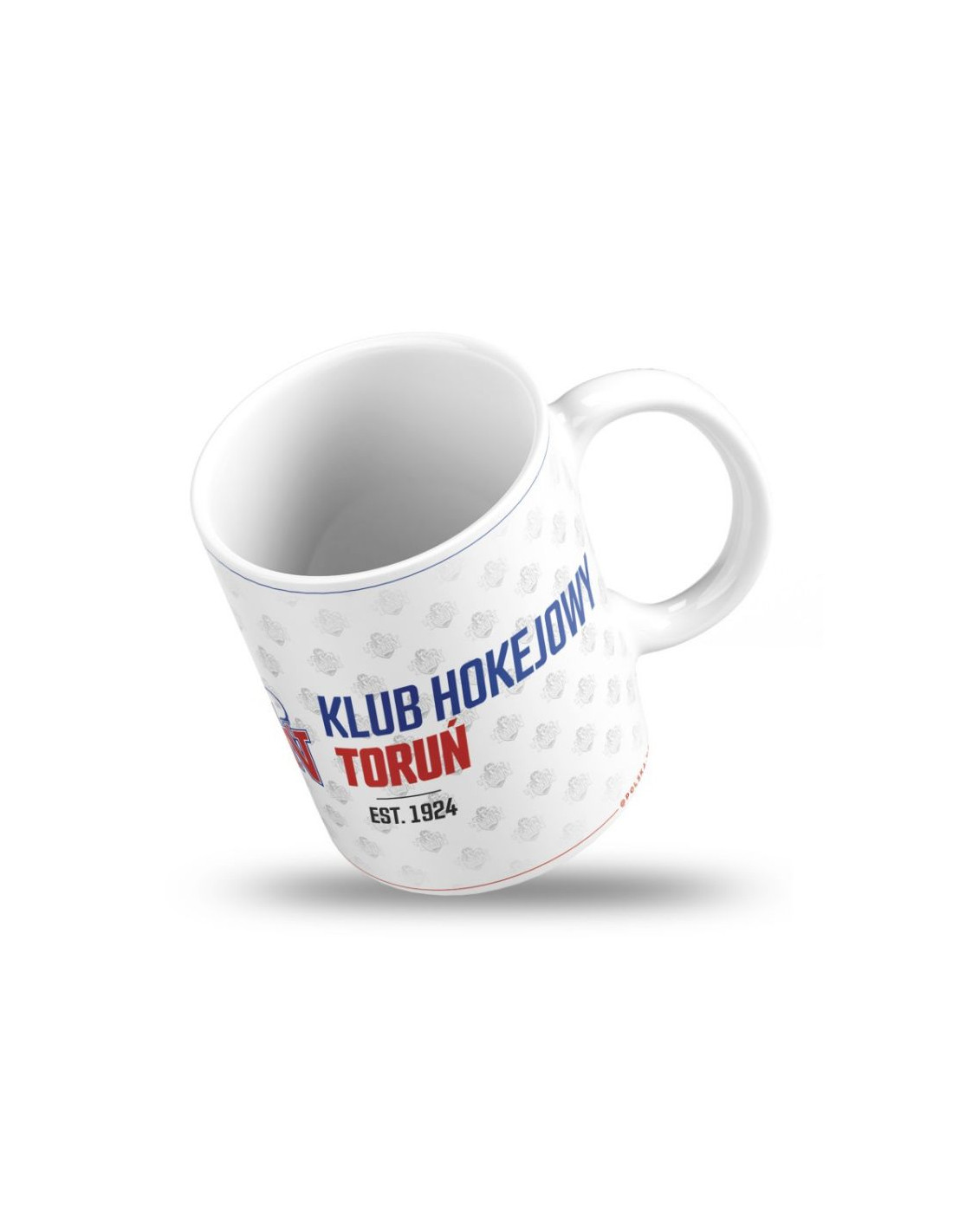 Kubek Kibica z podkładką KHT Toruń Kubek Kibica z podkładką KHT Toruń to idealny wybór dla każdego fana toruńskiego hokeja. Stylowy, praktyczny i pełen klubowego charakteru. Główne cechy: Unikalny design dostepny w trzech wersjach z podkładkami: A. Charakterystyczne czerwono-niebieskie barwy z logo KHT Toruń i dynamicznym tłem nawiązującym do energii lodowiska + podkładka. B. Charakterystyczne niebiesko-czerwone barwy z logo KHT Toruń i dynamicznym tłem nawiązującym do energii lodowiska + podkłatka. C. Delikatny wzór tła z herbem i wyrazisty napis „KLUB HOKEJOWY TORUŃ” z datą założenia – 1924. + podkładka Standardowa pojemność ok. 330 ml: Idealna do kawy, herbaty lub kakao – zarówno w pracy, w domu, jak i przed meczem na hali. Wysoka jakość wykonania: Trwała ceramika i błyszczące wykończenie – odporne na mycie i gotowe na intensywne kibicowanie! Kubek Kibica z podkładką KHT Toruń– to nie tylko gadżet – to codzienne przypomnienie o miłości do hokeja i dumy z klubu.