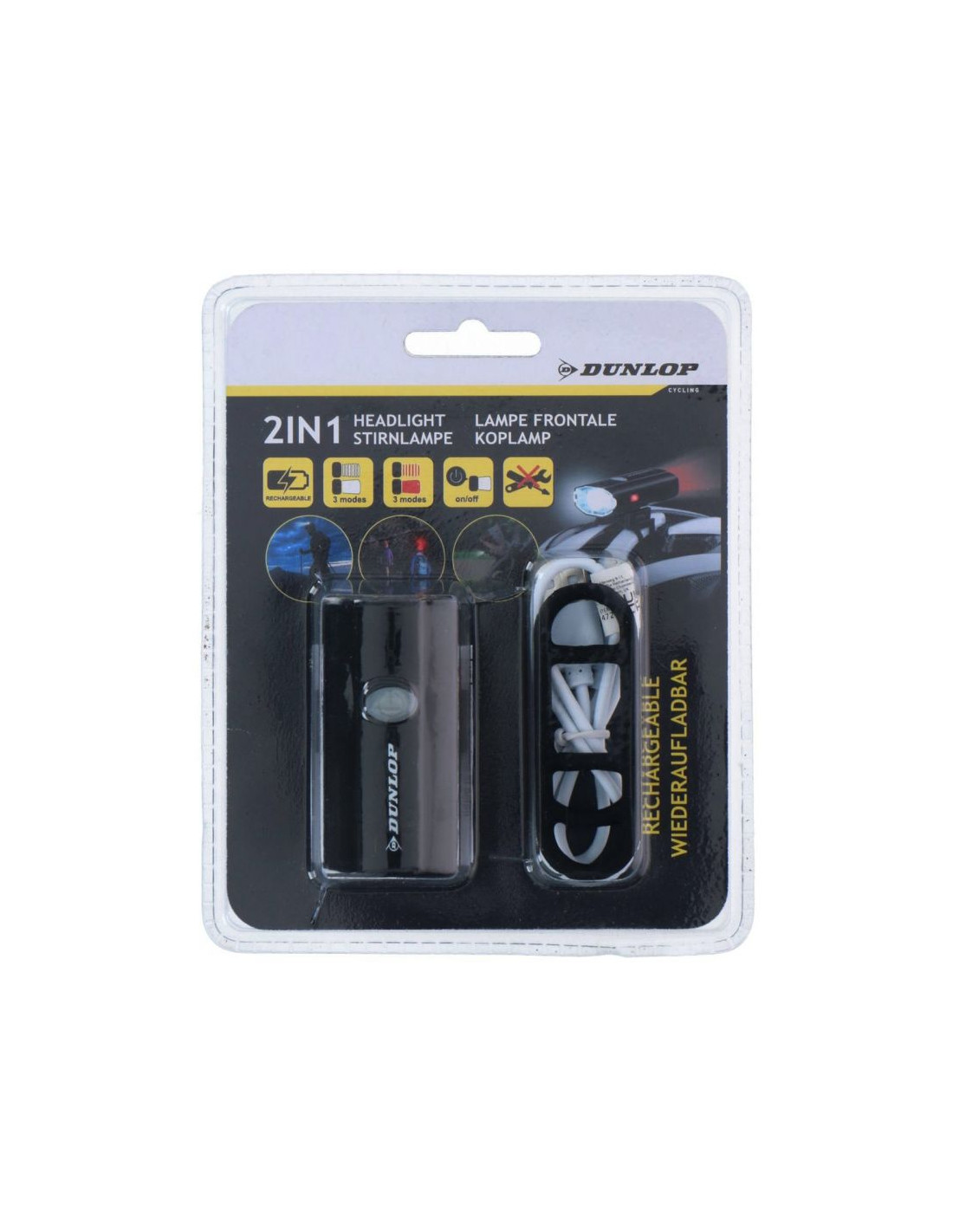 Lampka rowerowa Dunlop 2w1 ładowanie USB z uchwytem do mocowania na kasku 472843