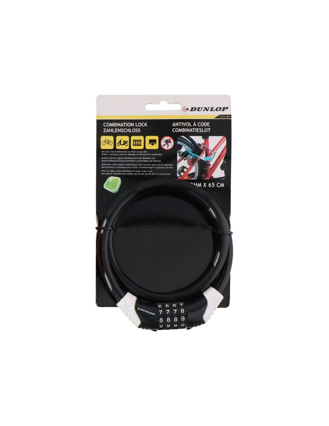 Zapięcie rowerowe Dunlop spiralne na szyfr 10 mm x 65 cm niebieskie 1042817