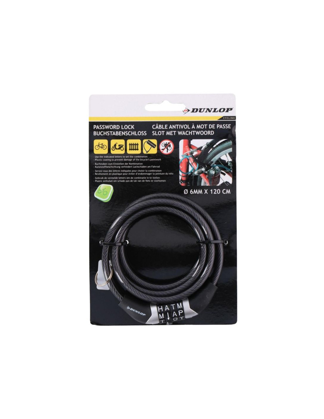 - Model: Zapięcie rowerowe Dunlop spiralne,szyfr 0,6x120 cm