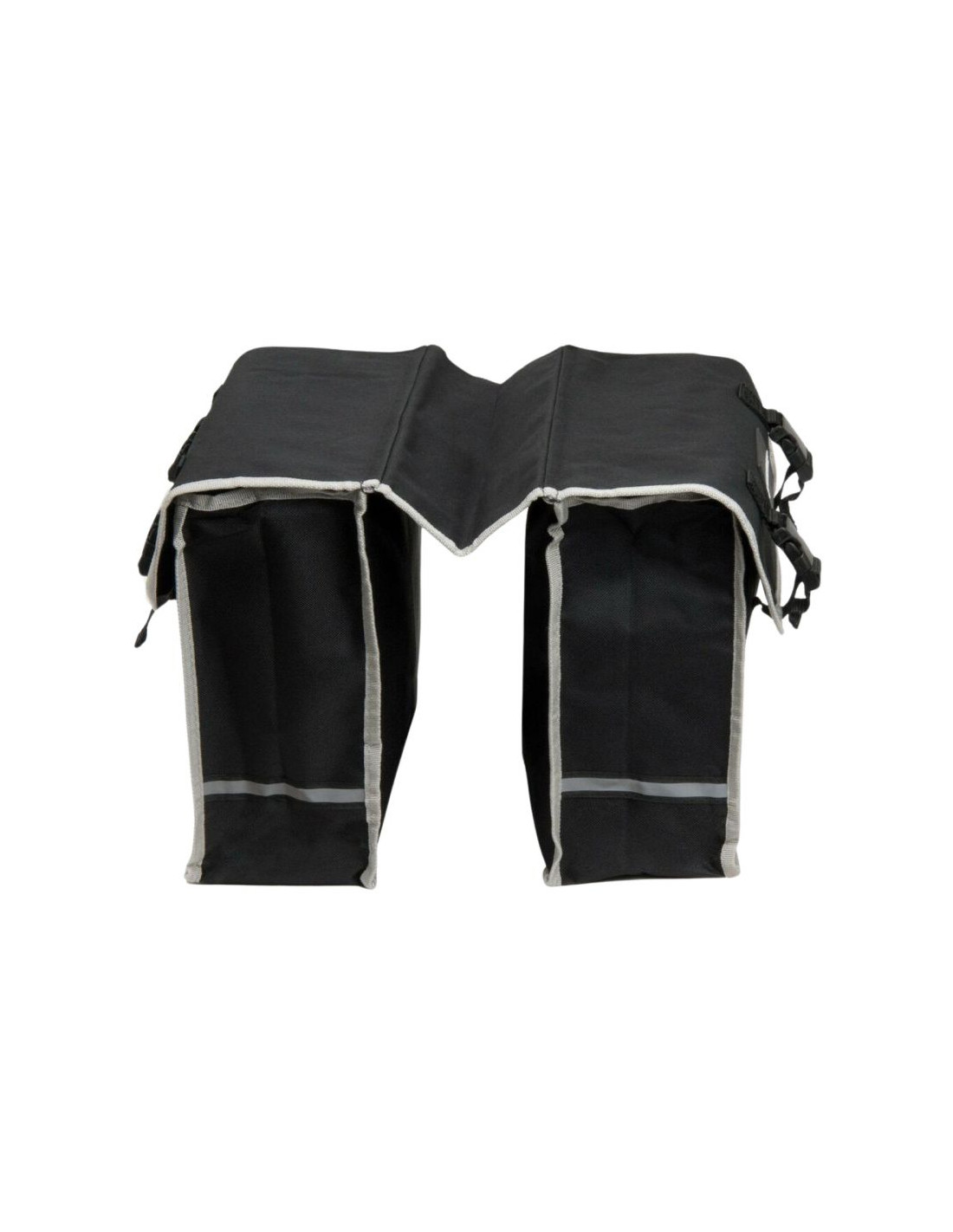 Podwójne torby na bagażnik mocowane są za pomocą mocnych pasków z rzepami. Dwie, boczne klamry drabinkowe. Odblaskowe elementy.