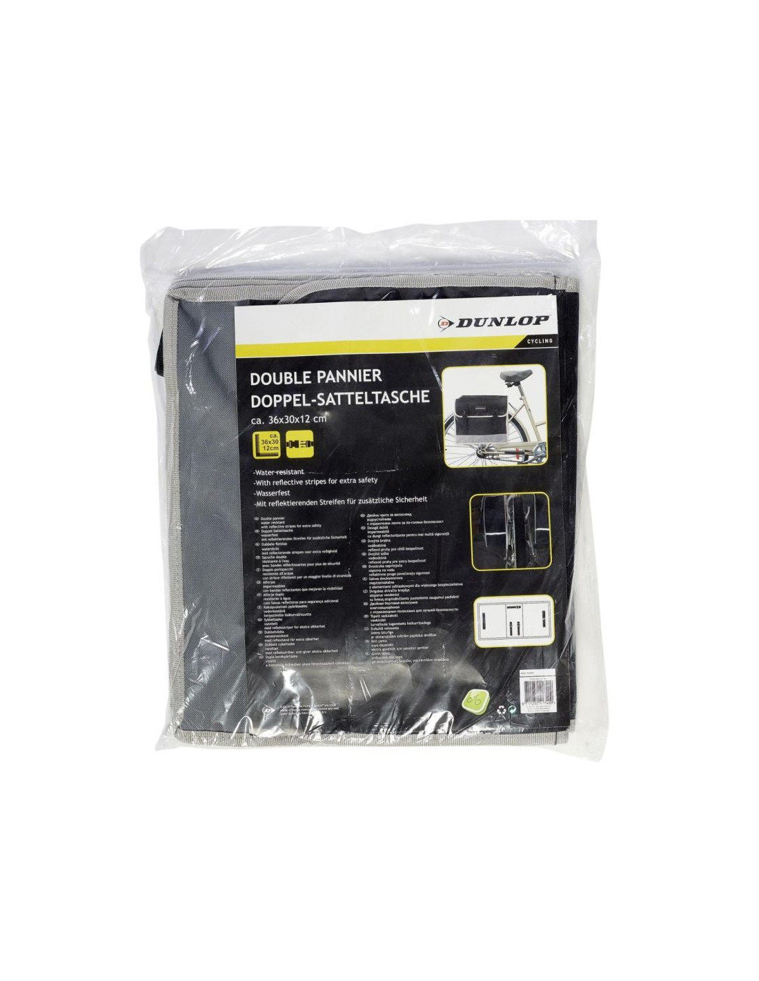Wymiary pojedynczej torby: 36 x 30 x 12 cm (szer. x wys. x gł.)· Szerokość materiału kładziona na siodełko: 36,5 x 15 cm (dł. x szer.)· Wymiary opakowania (folia): 38 x 44 x 2,5 cm (szer. x wys. x gł.)·