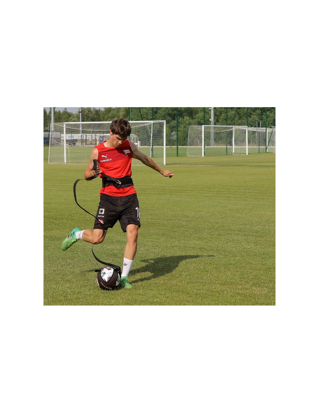 - Służy do szkolenia techniki, koordynacji i zwrotności, dzięki ćwiczeniu z piłką zaczepioną na specjalnym pasie - Pozwalają uzyskiwać o wiele większą efektywność zajęć treningowych, dzięki oszczędności czasu traconego zwykle na bieganie za piłką po nieudanym zagraniu- Zawodnicy mogą trenować wykonywanie strzałów, przyjęcie piłki różnymi częściami ciała, ćwiczą wyczucie czasu, koordynację i zwrotność