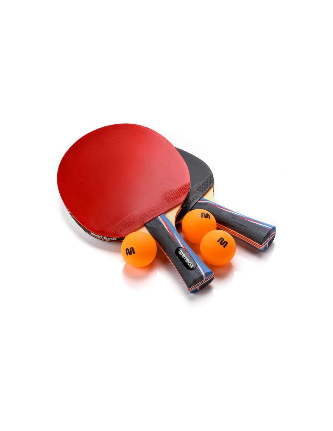 Zestaw do tenisa stołowego zawierający 2 rakietki i 3 piłeczki.