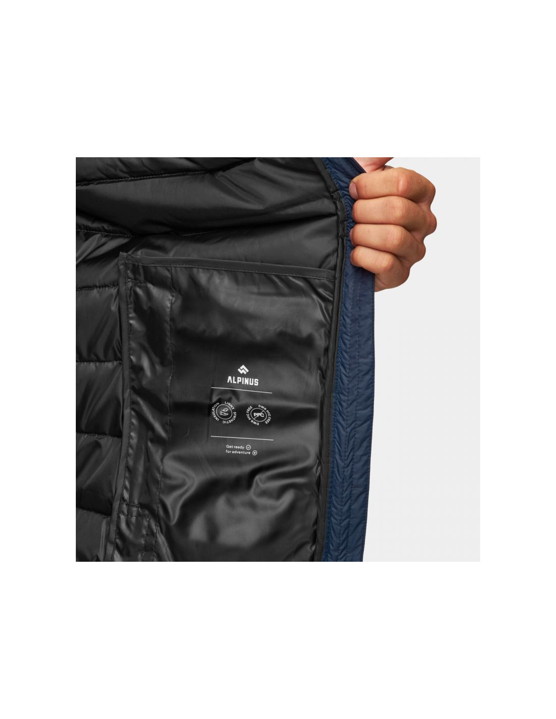 - Odblaskowy nadruk Alpinus Safety na plecach zwiększa widoczność po zmroku.