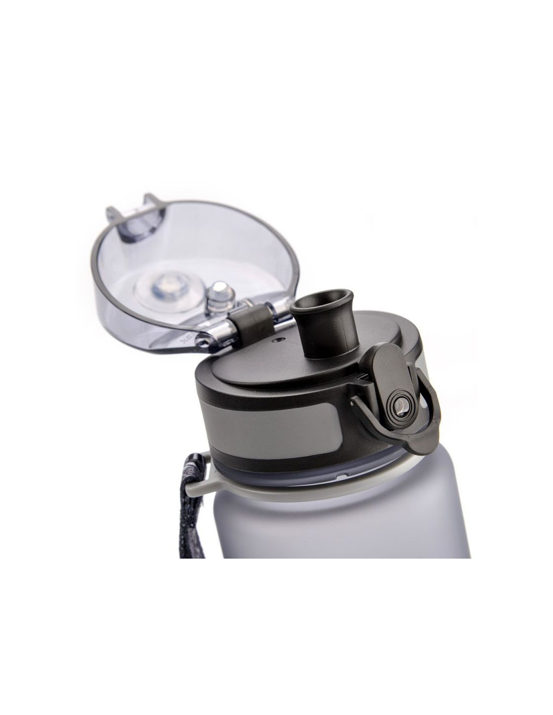- Kolorystyka butelki dodatkowo zachęca do nawodnienia organizmu. Posiada ona wygodny w noszeniu, pasek na rękę. Uszczelniona jest zamknięciem z blokadą, ale przy tym łatwo i szybko otwiera się za pomocą jednego dotknięcia. Dzięki specjalnej blokadzie wieczka, nie musisz się niepokoić przypadkowo wylanym napojem.