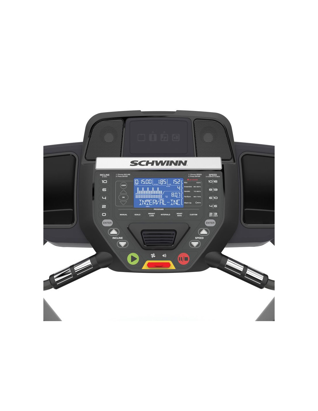 Bieżnia elektryczna Schwinn 510T to propozycja bieżni z oferty marki Schwinn. Dwa wyświetlacze LCD, silnik o mocy ciągłej 3 CHP, aż 16 zróżnicowanych programów treningowych oraz możliwość regulacji nachylenia bieżni w zakresie 0-15%, a także przystępna cena, z całą pewnością w pełni adekwatna do jakości, sprawiają, że jest to pozycja bardzo chętnie wybierana przez klientów poszukujących bieżni z górnej półki do użytku domowego.