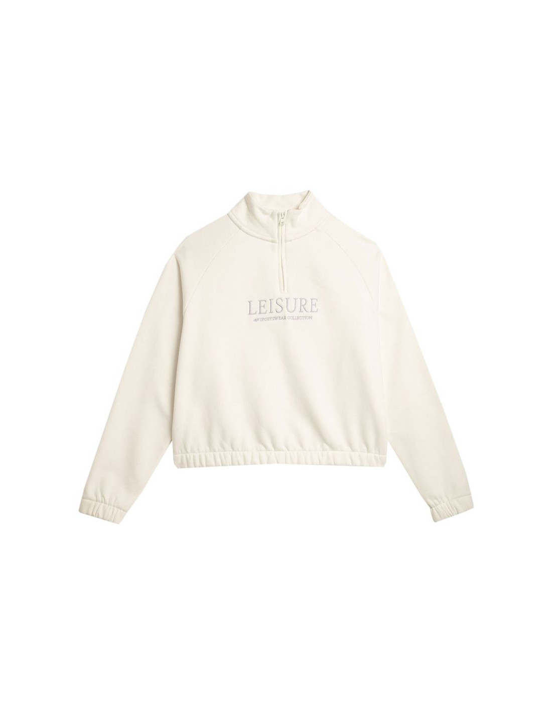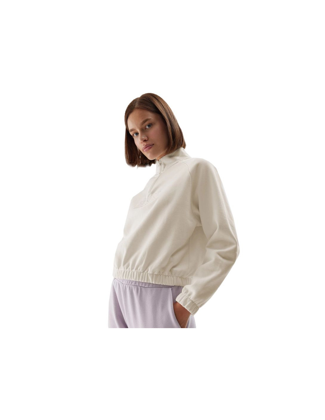 Bluza damska 4F F0718 kremowa 4FAW23TSWSF0718 12S Bluza damska sprawdzi się na co dzień. Ocieplana. Wkładana przez głowę. Bez kaptura. Stójka z krótkim suwakiem. Z przodu haftowany napis "Leisure 4F Sportswear Collection". Raglanowe rękawy zapewniają swobodę ruchu. Dół i mankiety zakończone gumkami. Miękki materiał z wysoką zawartością bawełny dla komfortu na co dzień. Materiał główny: 78% bawełna, 12% poliesterPodszewka: 100% bawełna