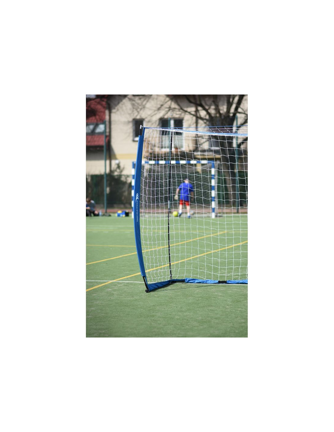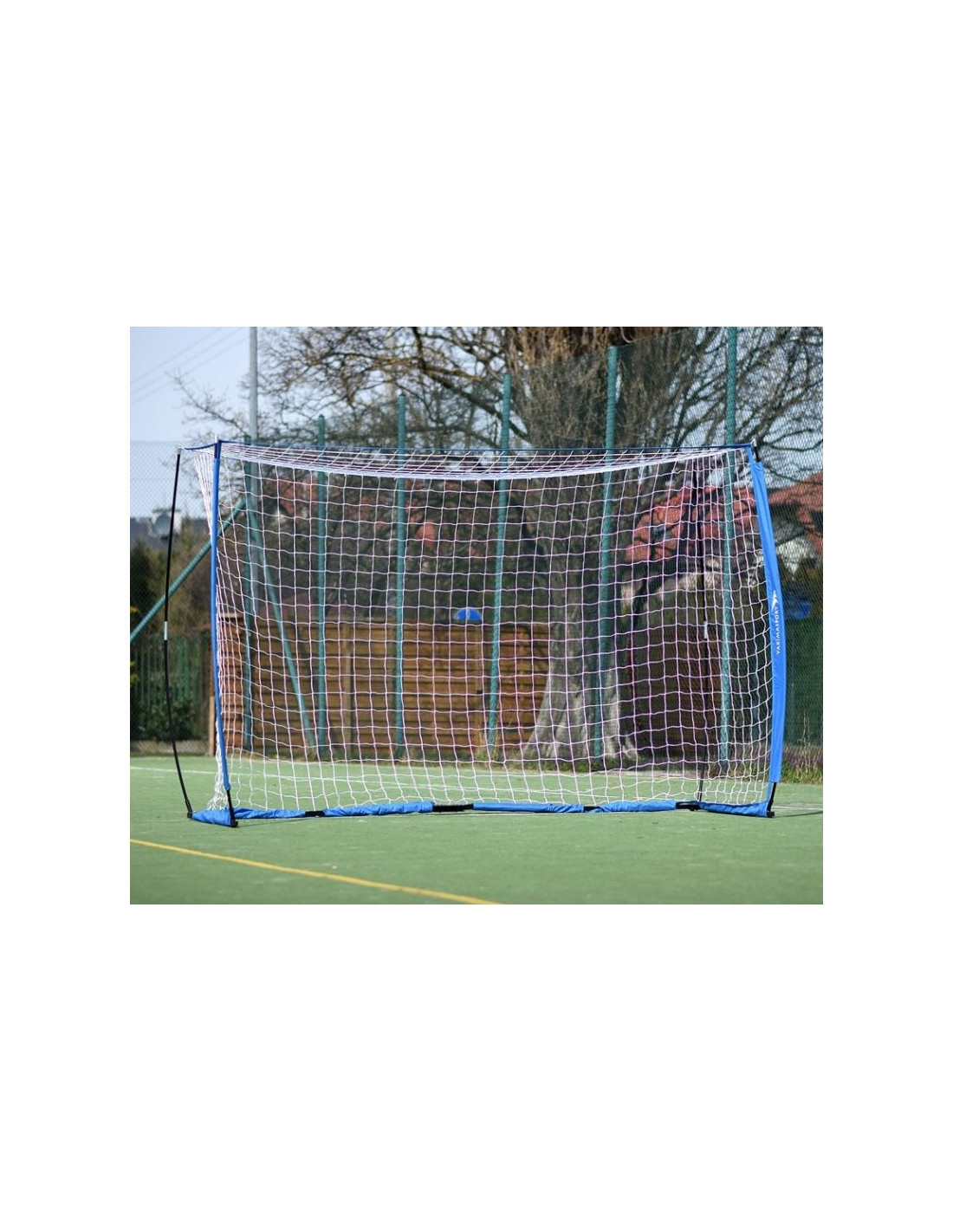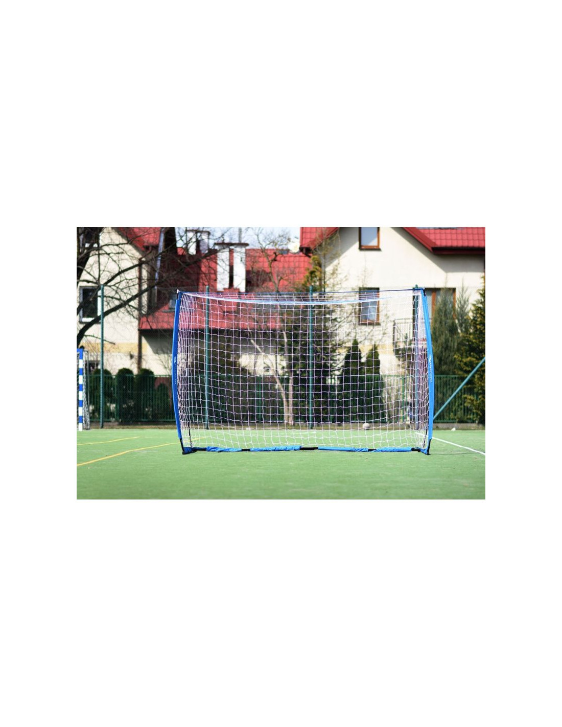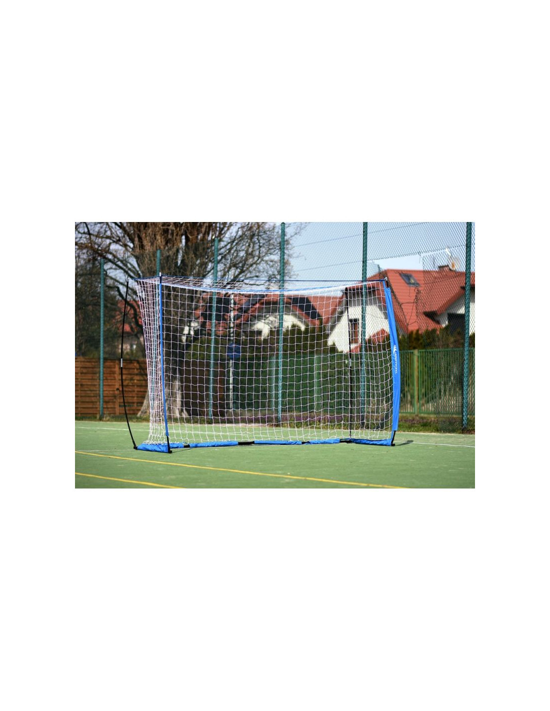 Bramka piłkarska 3x2 m typu UNI Wysokiej jakości bramka UNI. Konstrukcja Bramki sprawia, że bramka jest wytrzymała i przenośna. Jej wymiary to 3x2 m, zaś waga wynosi jedyne 10 kilogramów. Istnieje możliwość przymocowania bramki do różnych typów nawierzchni – boiska z naturalną trawą, hali, sztuczne trawy, a nawet betonu. - Wymiary (sz. x wys. x gł.) 300 x 200 x 80 cm- Szybki montaż i demontaż.- Bramka bardzo stabilna. Nie przesuwa się na wietrze oraz przy strzałach.- Siatka wykonana z polipropylenu.- W zestawie torba do przenoszenia i magazynowania bramki.- Śledzie do zamocowania bramki do murawy naturalnej oraz zestaw do mocowania na murawie twardej typu Orlik.- Do bramki dołączona instrukcja montażu.