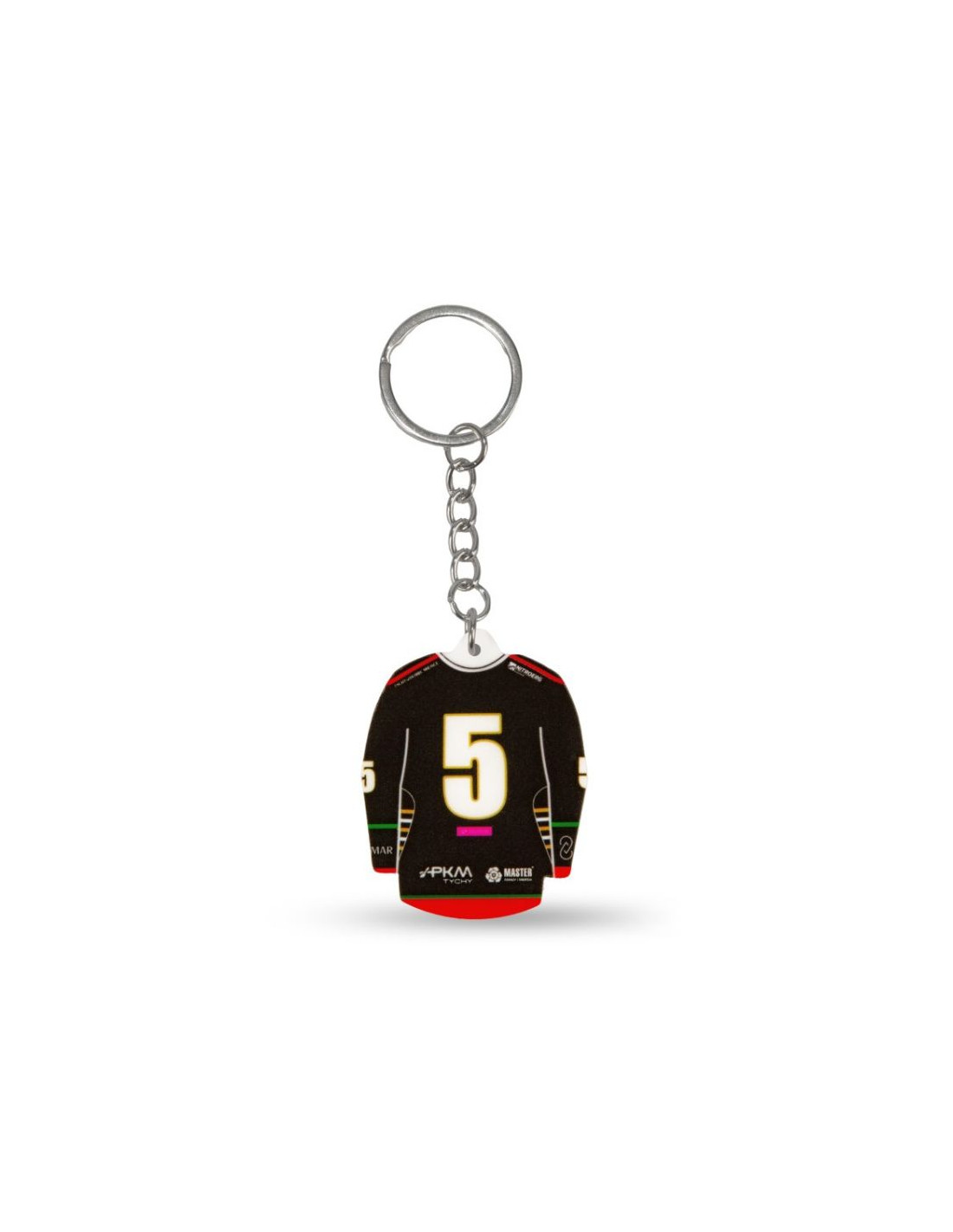 Brelok 'koszulka hokejowa' GKS Tychy (Away) Szukasz praktycznego, a zarazem stylowego gadżetu, który wyrazi Twoje wsparcie dla drużyny GKS Tychy? Brelok w kształcie koszulki hokejowej tego klubu to idealny wybór! To nie tylko funkcjonalny przedmiot codziennego użytku, ale także świetna pamiątka, która doskonale oddaje ducha drużyny. Główne cechy: Design: Brelok wiernie odwzorowuje wygląd oficjalnej koszulki wyjazdowej GKS Tychy, w kolorze czarnym Taki projekt wyróżnia się elegancją i klasycznym stylem, od razu przyciągając wzrok. Charakterystyczne logo GKS Tychy: Na przedzie koszulki znajduje się duże, rozpoznawalne logo GKS Tychy w trójkątnym kształcie, w barwach zielono-czerwono-złotych. To symbol dumy i tradycji klubu, który każdy fan hokeja zna i ceni. Numer "5" na plecach: Dbałość o detale jest imponująca – na tylnej części breloka widnieje numer "5", elegancko obramowany złotem co dodaje koszulce profesjonalnego charakteru. Logotypy sponsorów i herb miasta Tychy: Brelok nie tylko oddaje wygląd samej koszulki, ale również umieszcza ważne elementy, takie jak logotypy sponsorów oraz herb miasta Tychy, podkreślając związki drużyny z lokalną społecznością. Praktyczność i funkcjonalność: Dzięki solidnej konstrukcji i kompaktowemu rozmiarowi brelok doskonale sprawdzi się jako dodatek do kluczy, plecaka czy torby sportowej. To funkcjonalny gadżet, który jednocześnie pozwala na codzienne manifestowanie swojego przywiązania do ulubionej drużyny. : Ten brelok w kształcie koszulki wyjazdowej GKS Tychy to doskonały gadżet dla każdego wiernego kibica. Jest nie tylko praktyczny, ale również wyjątkowo estetyczny – idealny do przypięcia do kluczy, torby czy plecaka.
