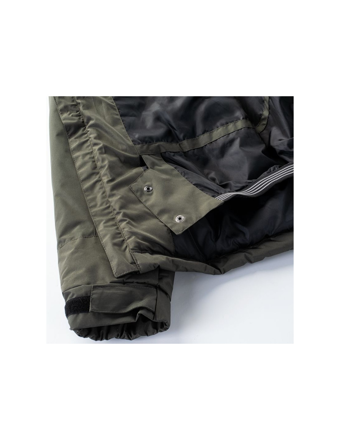 - Kieszenie boczne, wewnętrzne i kieszeń nad miankietem na skipass