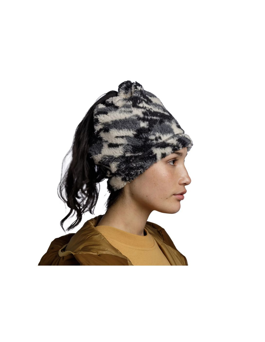 - Dzięki specjalnemu projektowi i sznurkowi, komin z łatwością zamienisz w czapkę