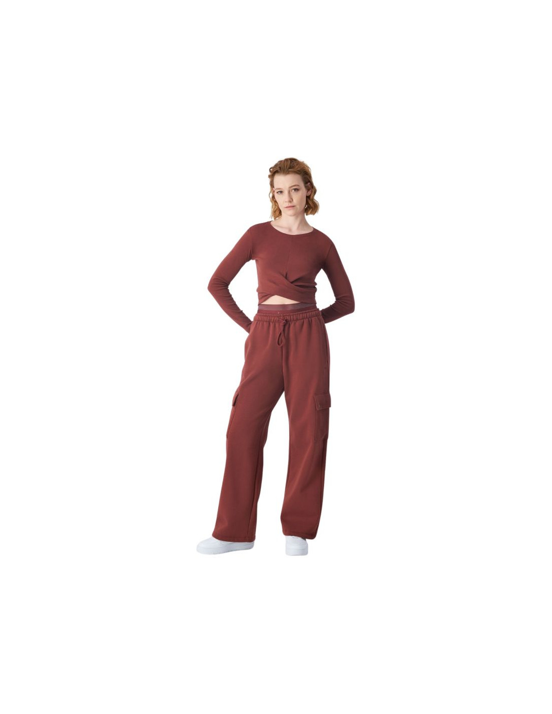 - Dopasowany, krótszy krój z zawijanym przodem.