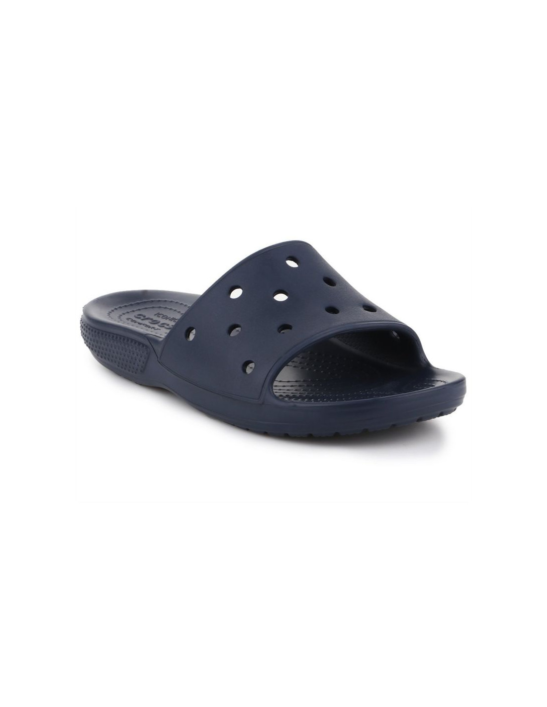 Klapki Crocs Classic Slide M 206121-410Właściwości:idealne na basen lub plażę klapki wykonane z materiału Croslite™cechują się niesamowitą wygodą noszenia, lekkością oraz łatwością w czyszczeniuMateriał:tworzywoKolor:granatowy
