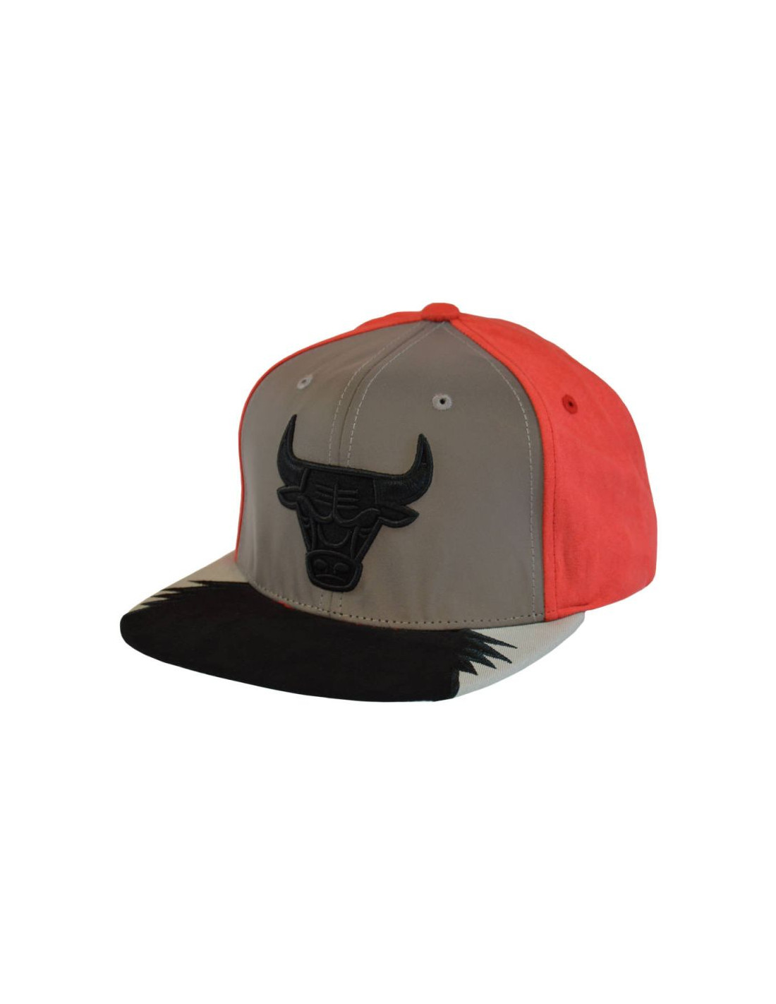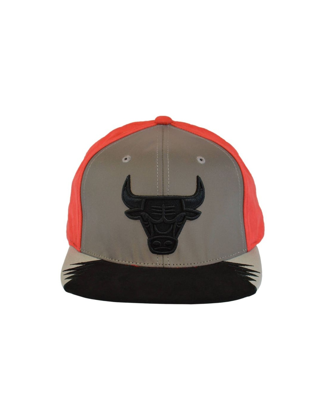 Na przodzie znajduje się płaskiczarny haft z logotypem drużyny NBA - Chicago Bulls, a z tyłu logo markiMitchell & Ness.