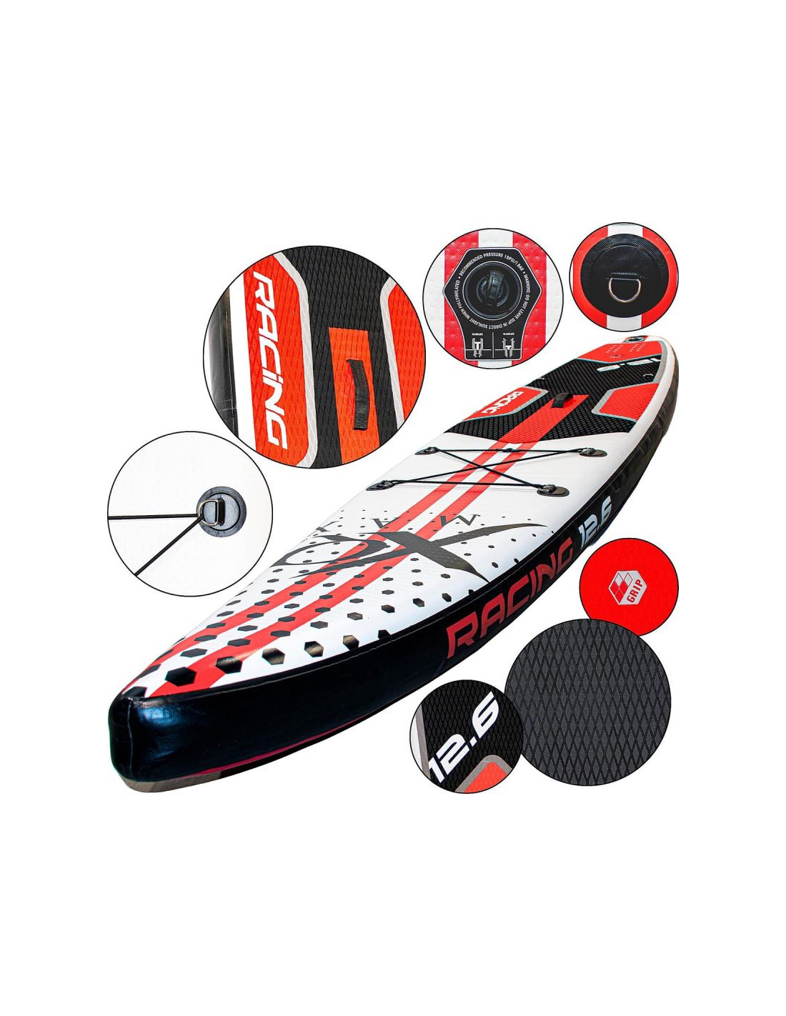Po napompowaniu do zalecanego ciśnienia 15 PSI deska uzyskuje twardość porównywalną z klasycznym SUP-em sztywnym. Wyższe ciśnienie zwiększa stabilność, trzymanie kursu i bezpieczeństwo. Jednocześnie konstrukcja pozostaje lekka i łatwa do przenoszenia.