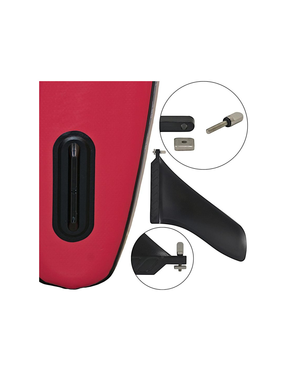 Zapewnia stabilność kierunkową i ułatwia naukę manewrów. Po zakończeniu pływania można go łatwo odpiąć bez użycia narzędzi, co umożliwia szybkie złożenie deski do transportu. Kompaktowość i wygoda w jednym rozwiązaniu.