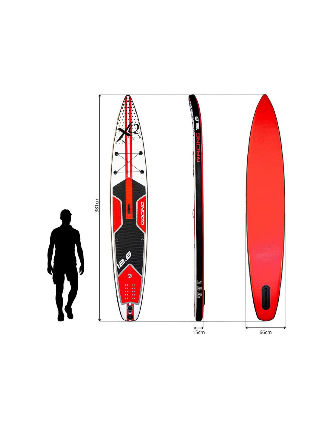 - Materiał: deska PVC, Pianka EVA, tworzywo sztuczne, aluminium, pokrowiec poliester