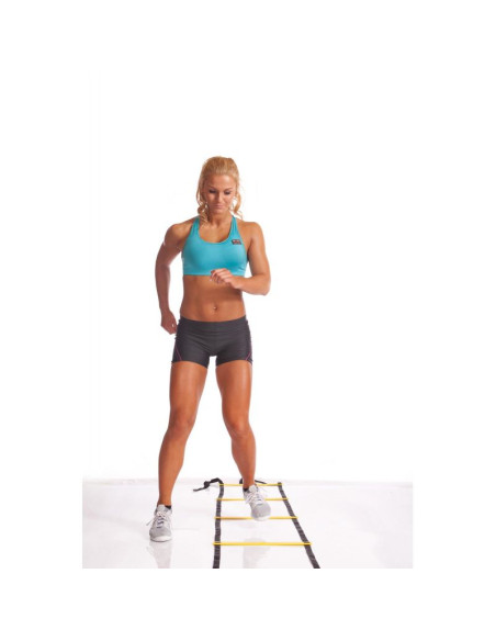 Drabinka do treningu szybkościowego z serii Power wyposażona w 8 płaskich, sztywnych, szczebli w intensywnym żółtym kolorze dla lepszej widoczności. Ćwiczenia z drabinką rozwijają szybkość, zwinność, refleks, moc i koordynację ruchową, dodatkowo poprawiają stabilność i wytrzymałość stawów.