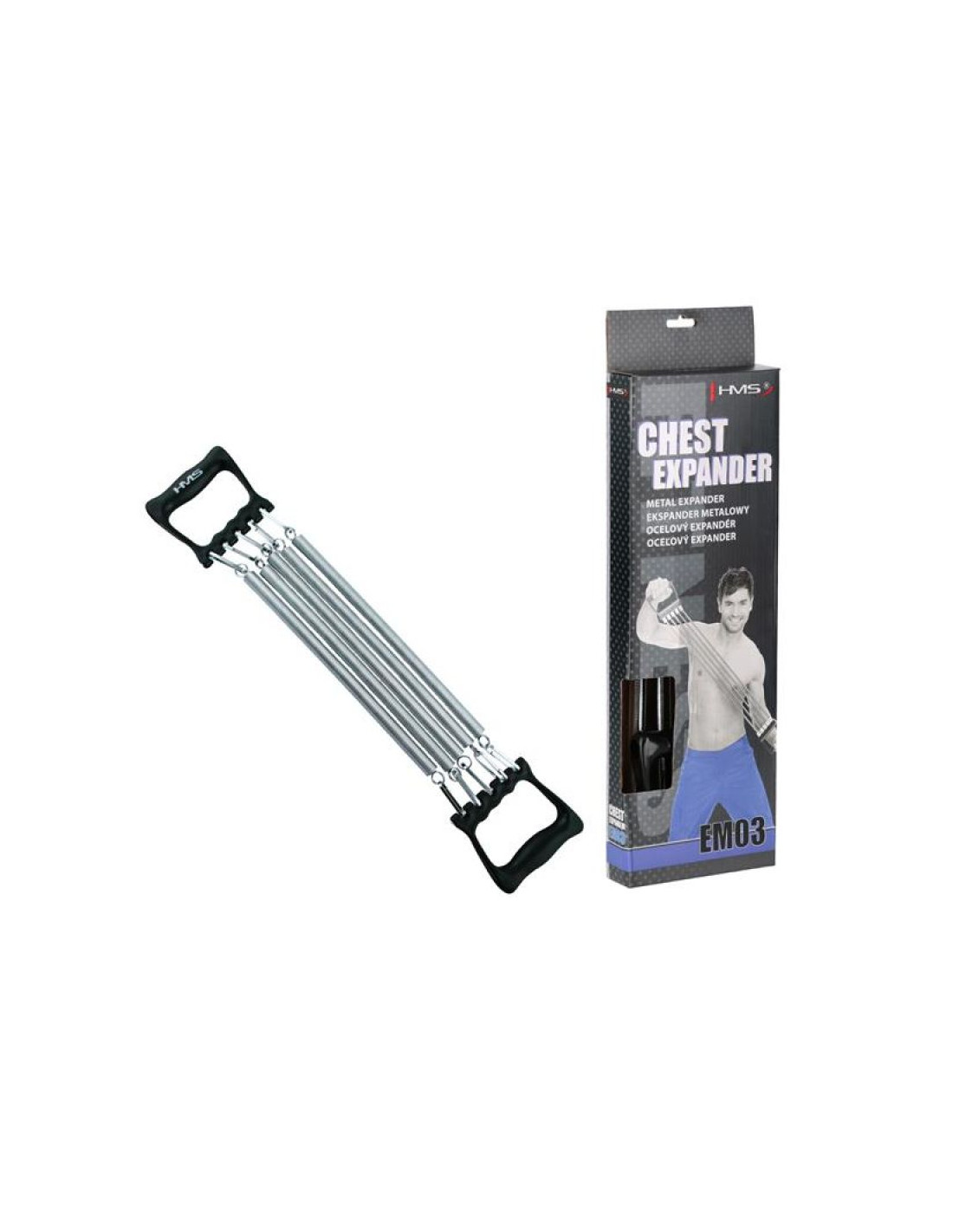 - EM03 HMS - to przyrząd do ćwiczeń górnych partii mięśniowych. Składa się z pięciu sprężyn, które zamocowano przy pomocy haków do dwóch uchwytów z wytrzymałego tworzywa.