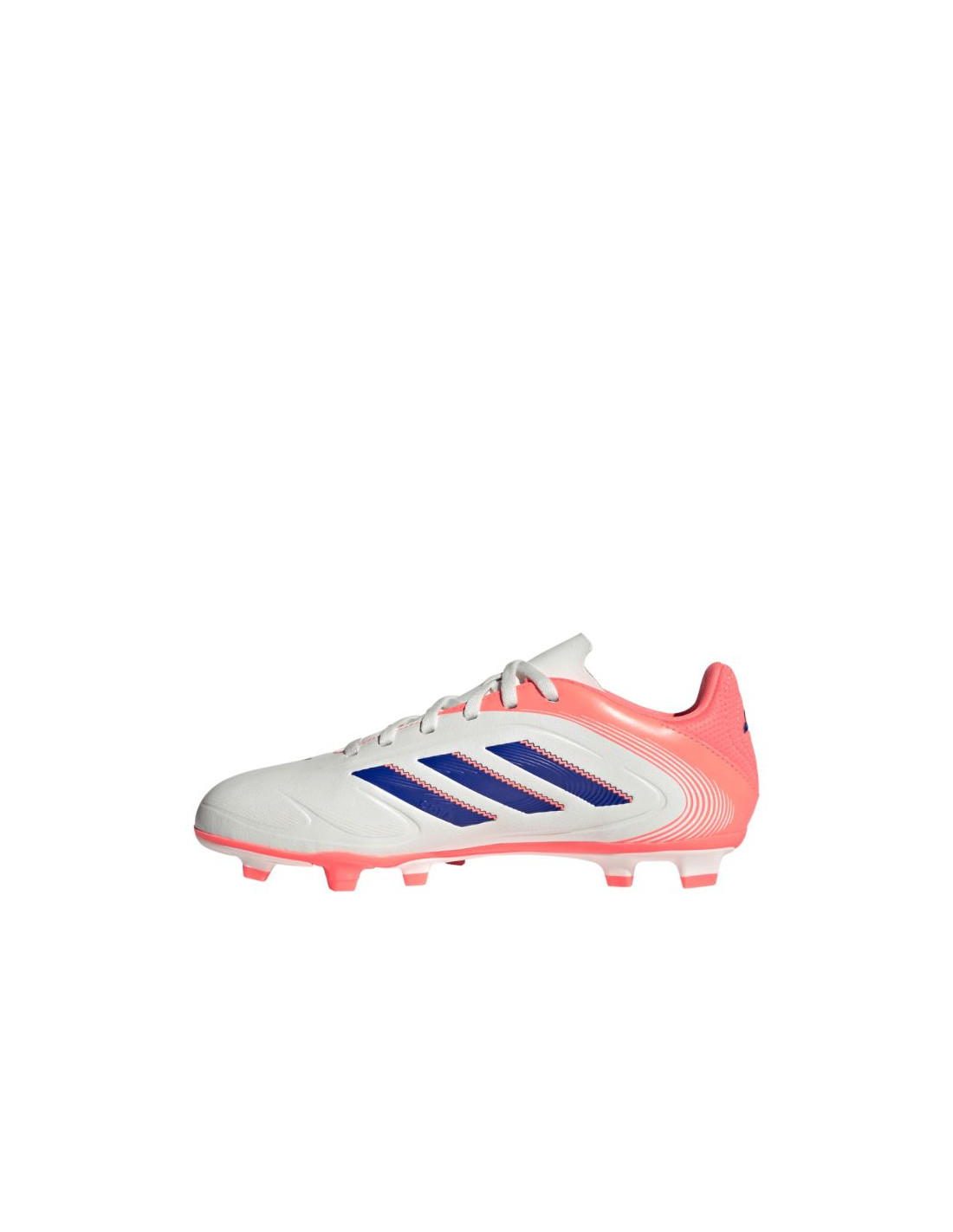 Buty piłkarskie dla dzieci adidas Copa Pure 3 Club FG/MG JR2907 Buty piłkarskie adidas pochodzą z kolekcji Coral Blaze Pack. Przeznaczone są dla dzieci do gry na naturalnej nawierzchni trawiaste i sztucznej murawie. Miękka, syntetyczna cholewka ma przypominającą skórę ziarnistą teksturę i nadruk 3D w przedniej części stopy. Model sznurowany. Standardowe dopasowanie. Perforowany język. Specjalistyczna podeszwa gwarantuje przyczepność. Poziom: amatorski.