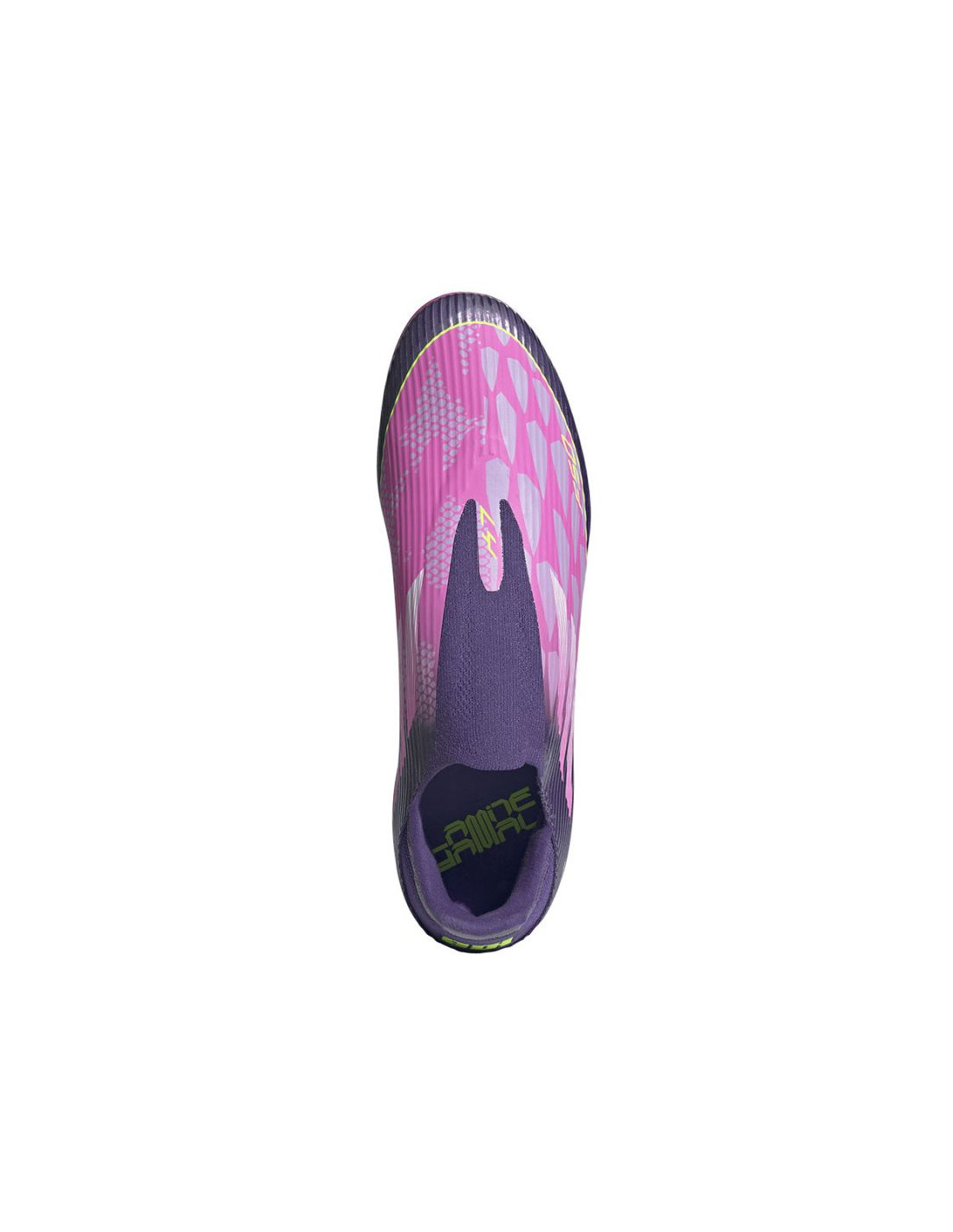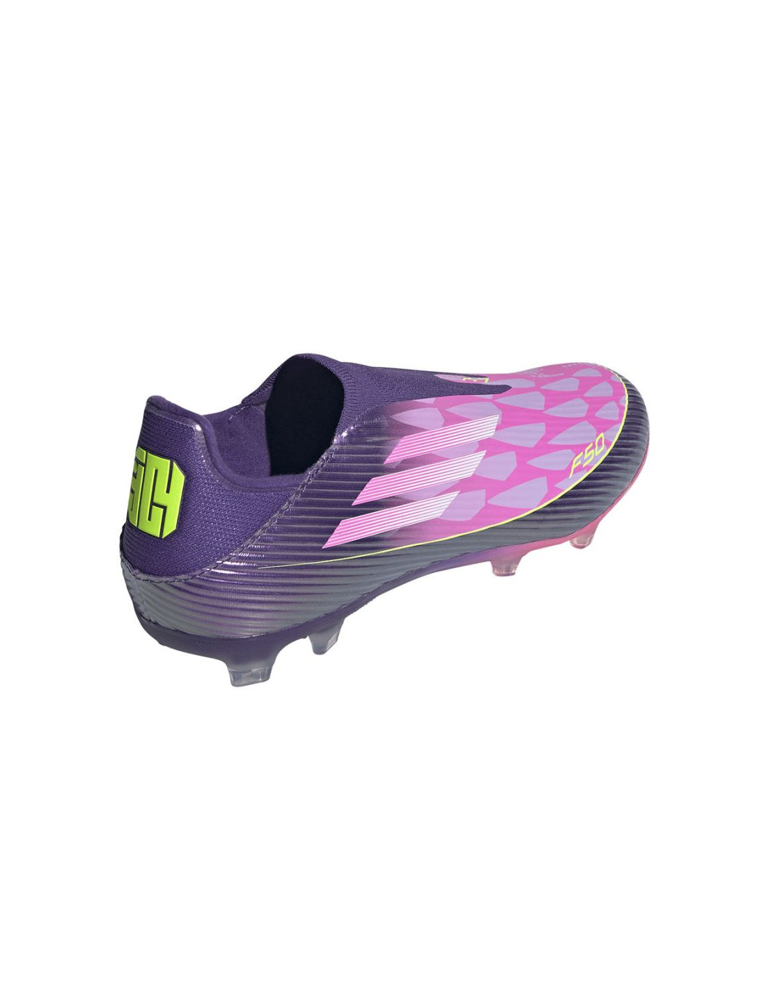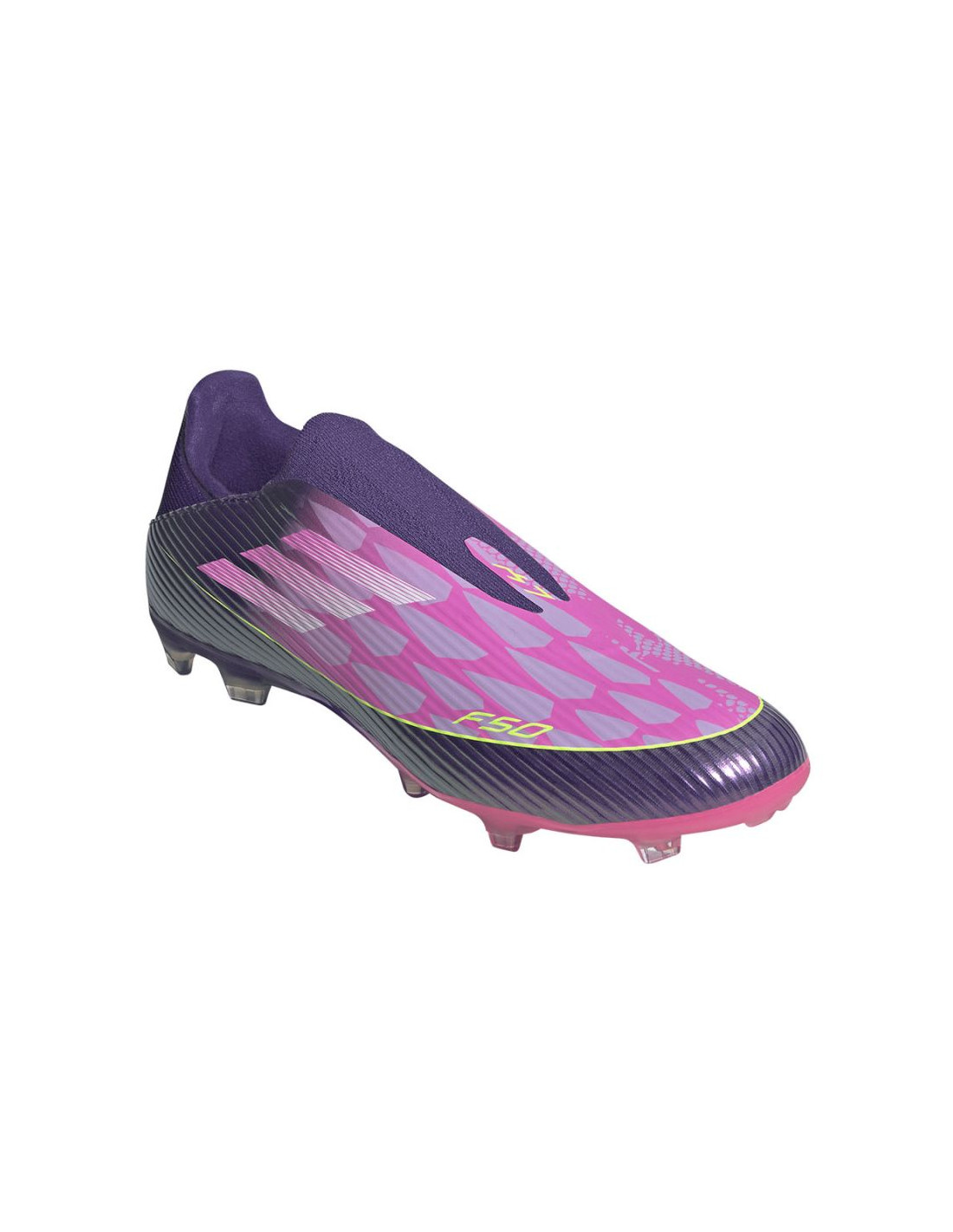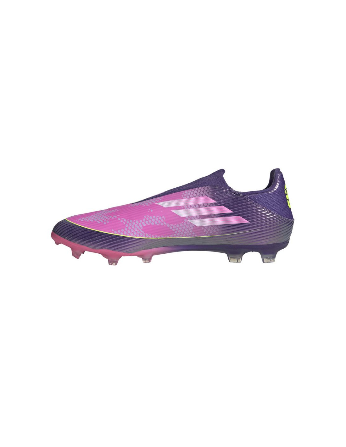 Wejdź odważnie na boisko w butach piłkarskich F50 League bez sznurowadeł, stworzonych do gry na naturalnej nawierzchni. Podkręć swój styl gry w tych butach piłkarskich, które zaprojektowano z myślą o prędkości i zwinności. Cholewka Fiberskin wykonana z materiału o specjalnej, miękkiej w dotyku konstrukcji zapewnia odpowiednie wsparcie za sprawą strategicznie rozmieszczonym liniom 3D. Nadruk Sprintgrid 2D zapewnia osłonę przeciwbłotną, wizualnie naśladując element modeli z najwyższej półki cenowej. Te buty od adidas stworzone dla nowoczesnych piłkarzy pomagają uzyskać nadzwyczajną prędkość dzięki najbardziej zaawansowanym technologiom. Dzięki tym butom piłkarskim osiągniesz doskonałość na boisku ze stylem i precyzją.