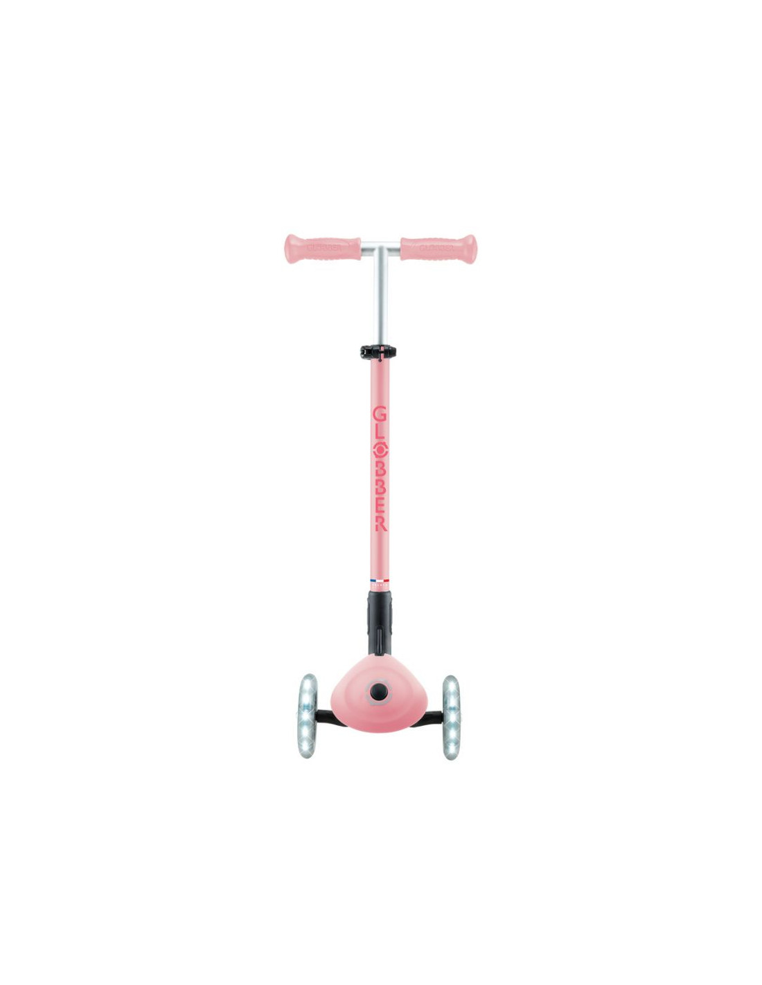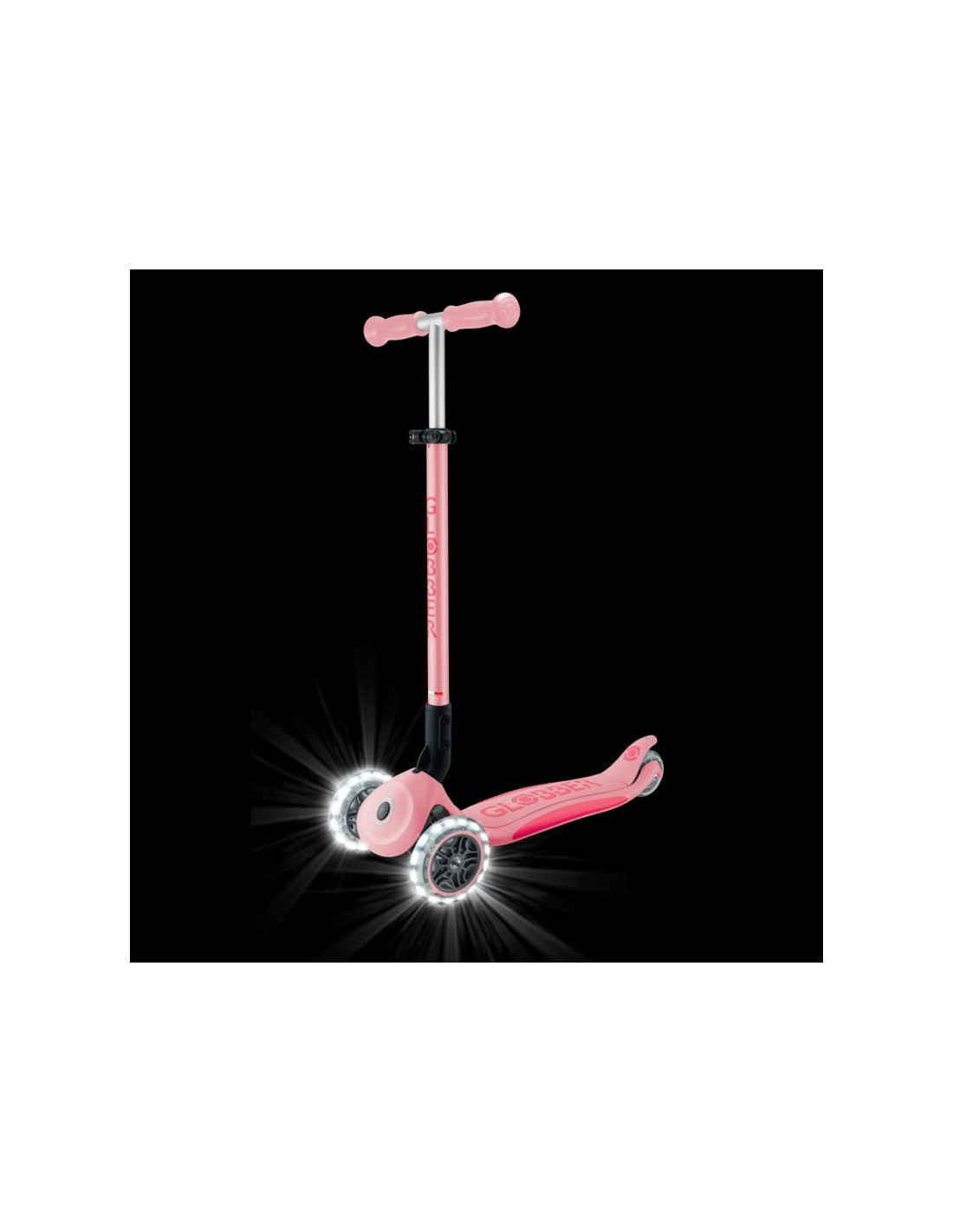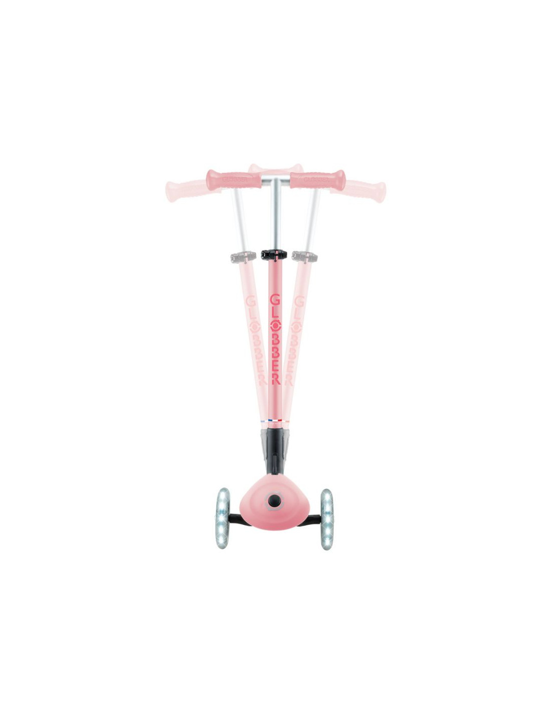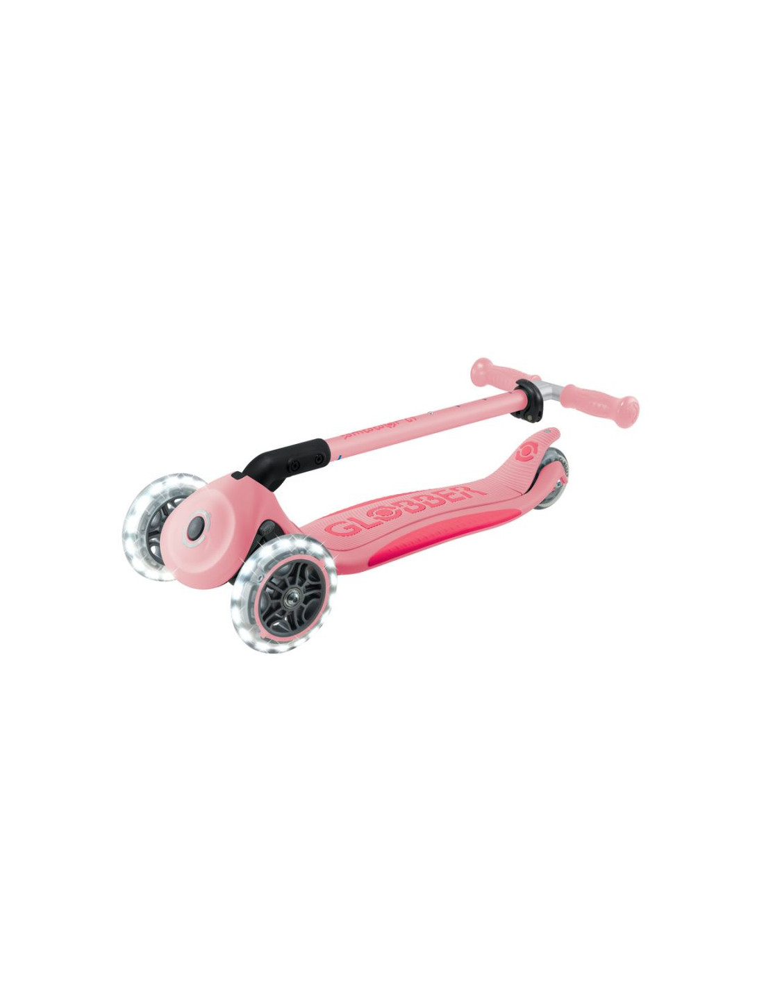 - 3-kołowa hulajnoga z opatentowanym przez Globber systemem składania z bezpiecznym przyciskiem, który składa hulajnogę w tryb wózka. Wygodnie przenoś, tocz lub przechowuj po zabawie!