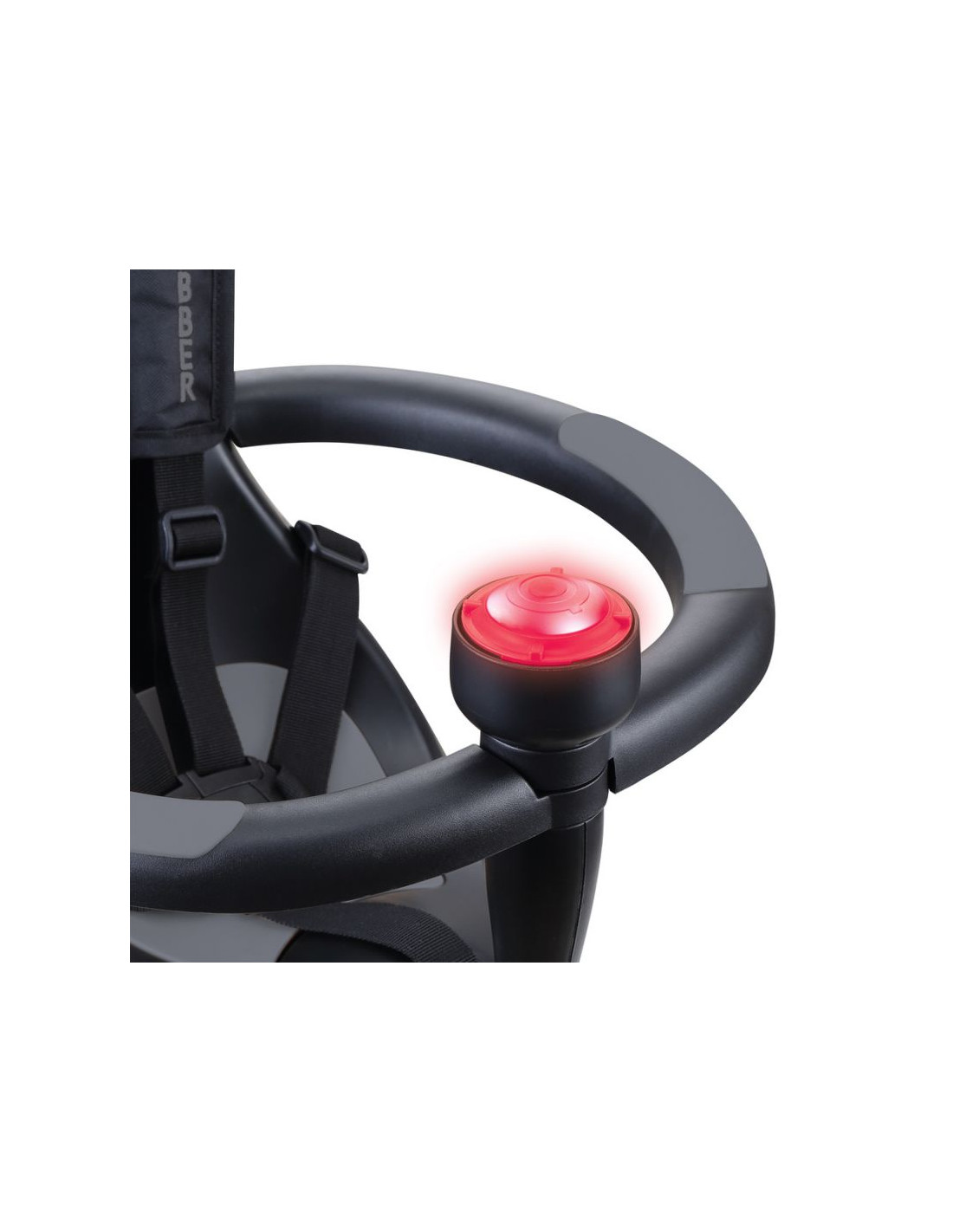 - Wysokie oparcie siedziska (32 cm, 35 cm od podłoża) z miękką, antypoślizgową powłoką TPR, 5-punktowe pasy bezpieczeństwa z miękkimi, wygodnymi ochraniaczami na ramiona i pałąkiem bezpieczeństwa (tryb trójkołowego wózka dla niemowląt).