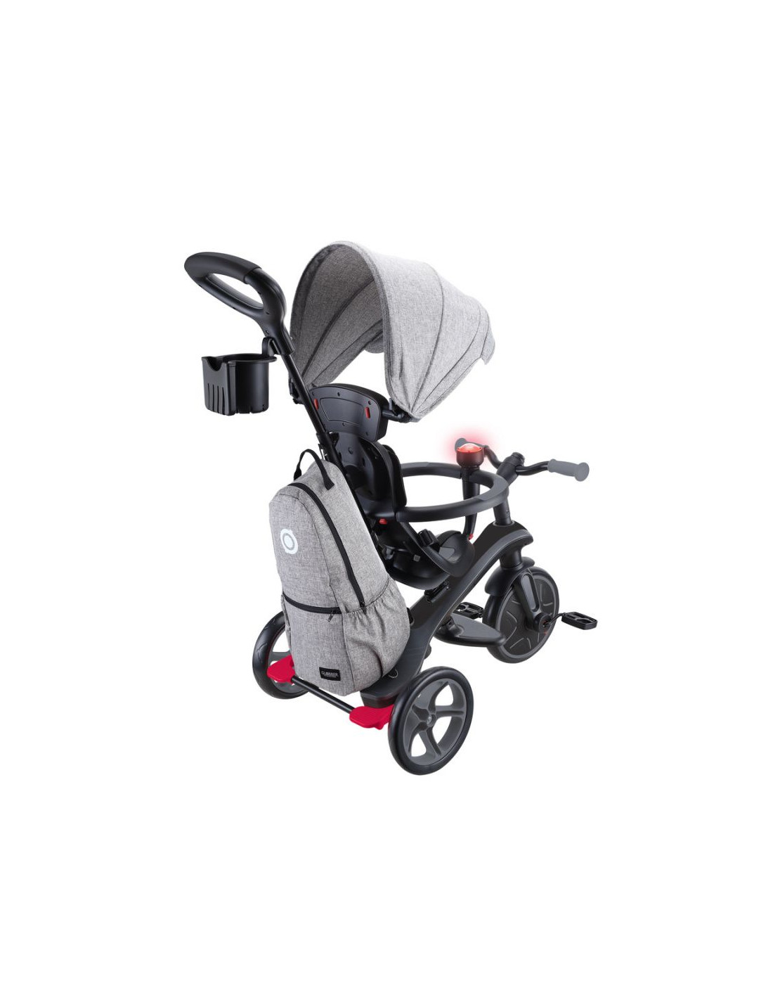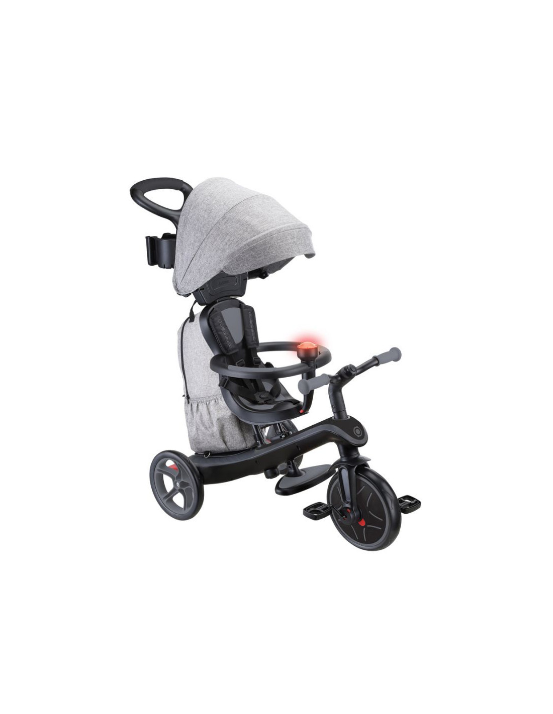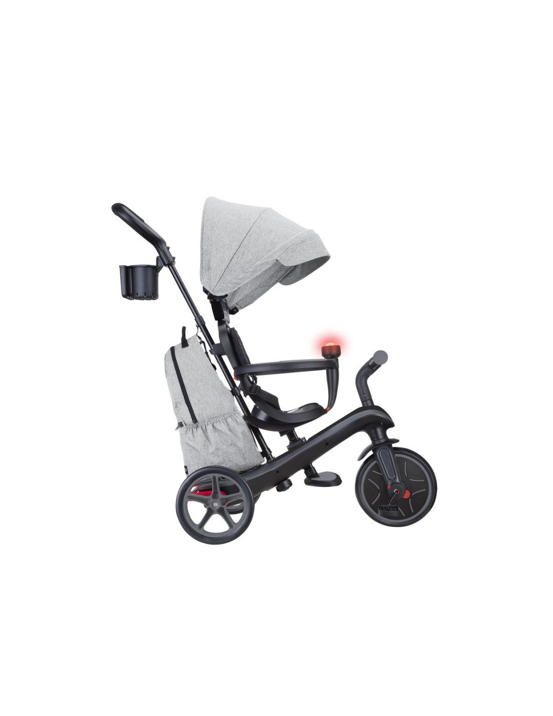 - Wózek EXPLORER TRIKE 4w1 DELUXE PLAY jest sprzedawany z akcesoriami dla rodziców: zintegrowaną, wyjmowaną torbą o pojemności 11 l i uchwytem na butelkę oraz telefon.