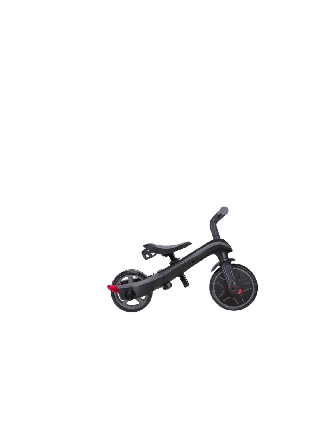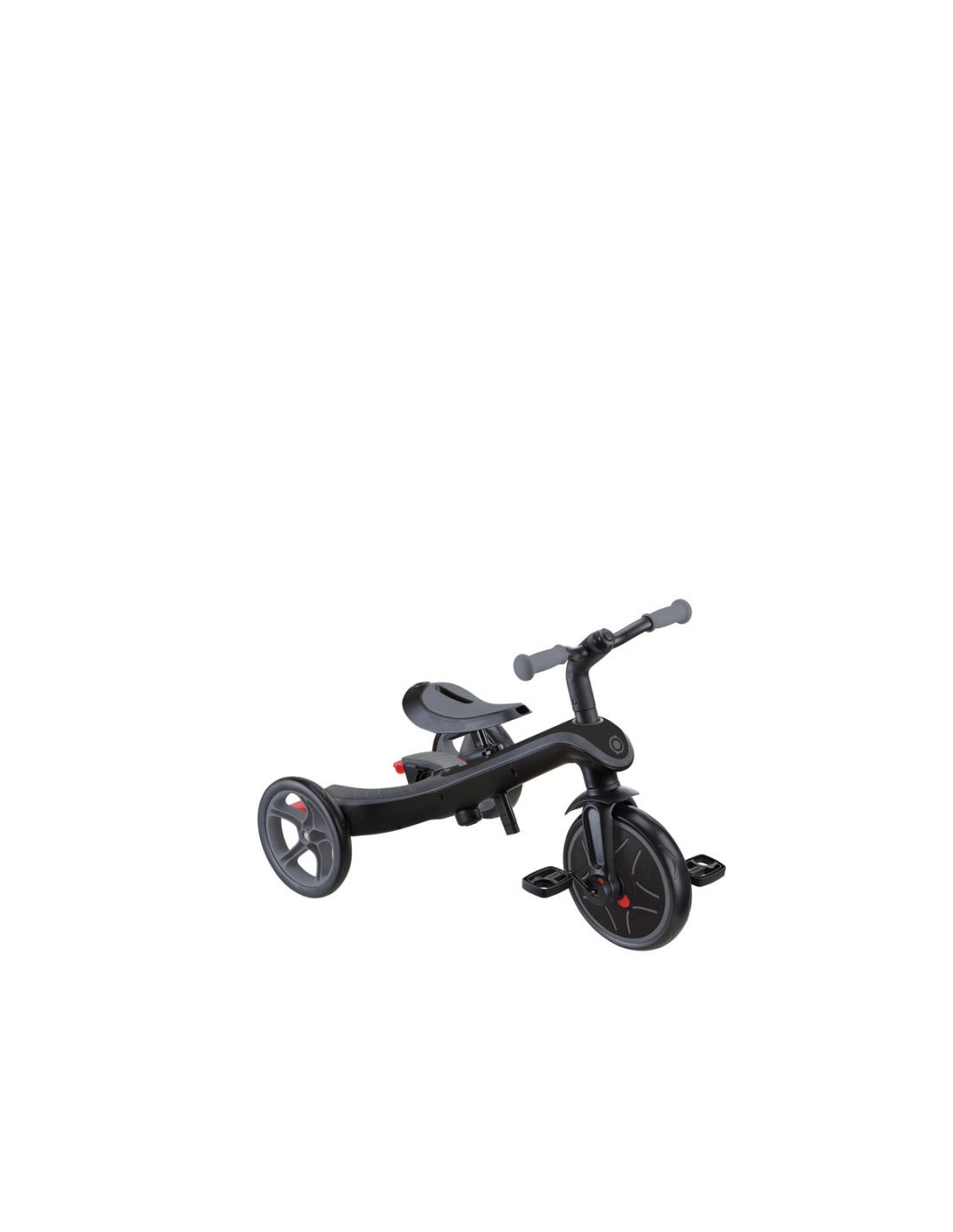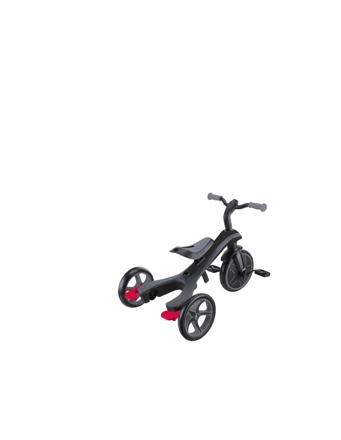 EXPLORER TRIKE posiada wbudowany, sprytny schowek na pedały, dzięki czemu można łatwo umieścić pedały pod siodełkiem rowerka biegowego i nigdy ich nie zgubić podczas przekształcania produktu!
