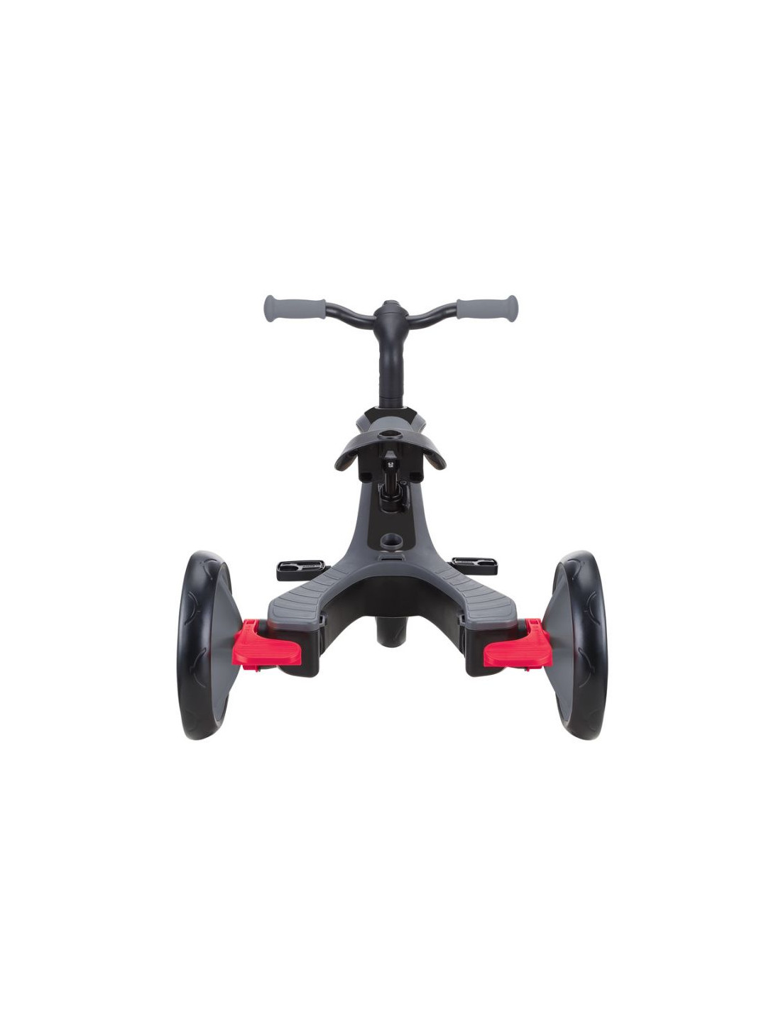 - Konstrukcja w 100% bez użycia narzędzi pozwala na łatwą zmianę trybów bez konieczności używania narzędzi lub śrub — EXPLORER TRIKE 4w1 DELUXE PLAY ma sprężynowe przyciski i pokrętła, które umożliwiają płynną transformację z trójkołowego wózka w rowerek biegowy.
