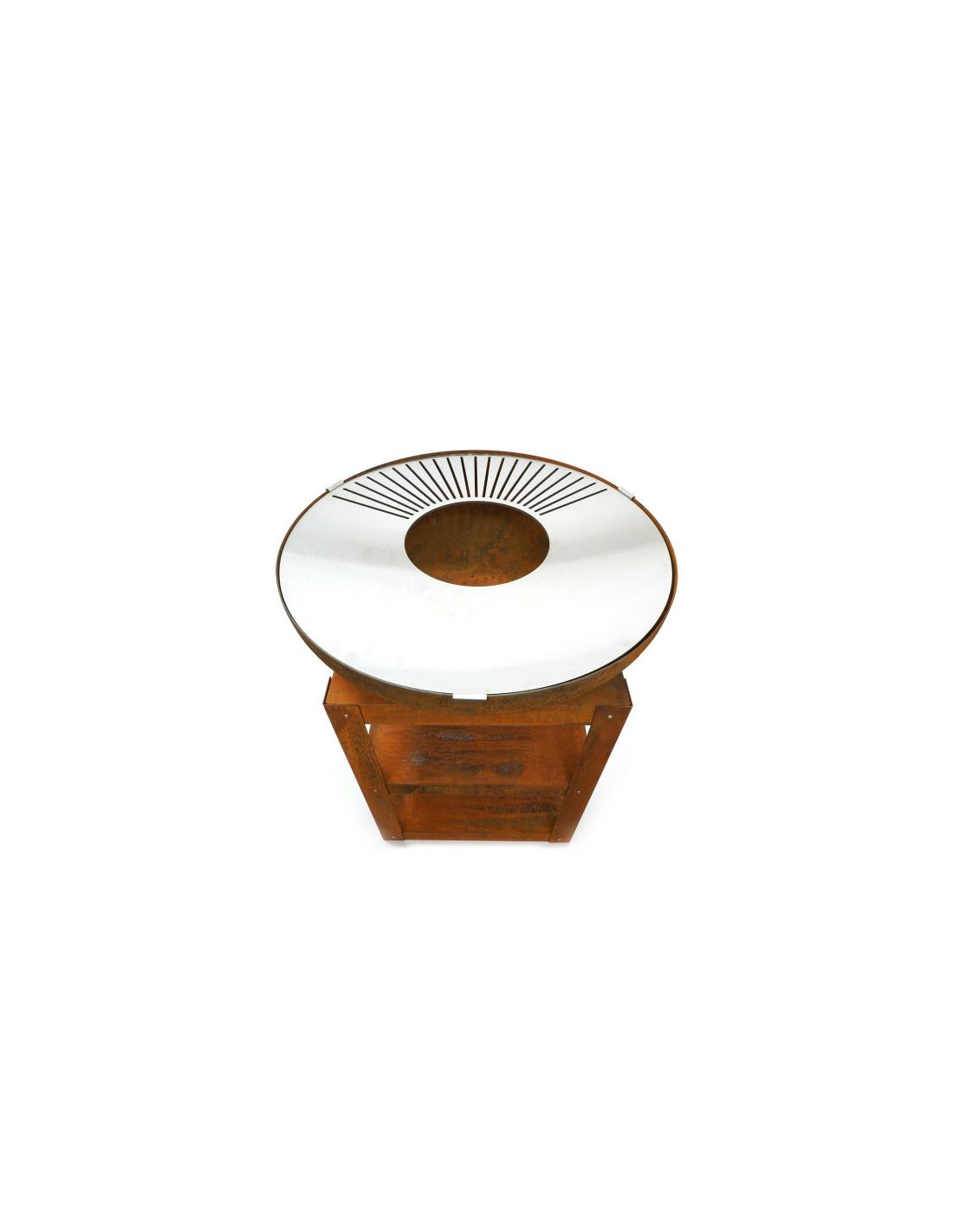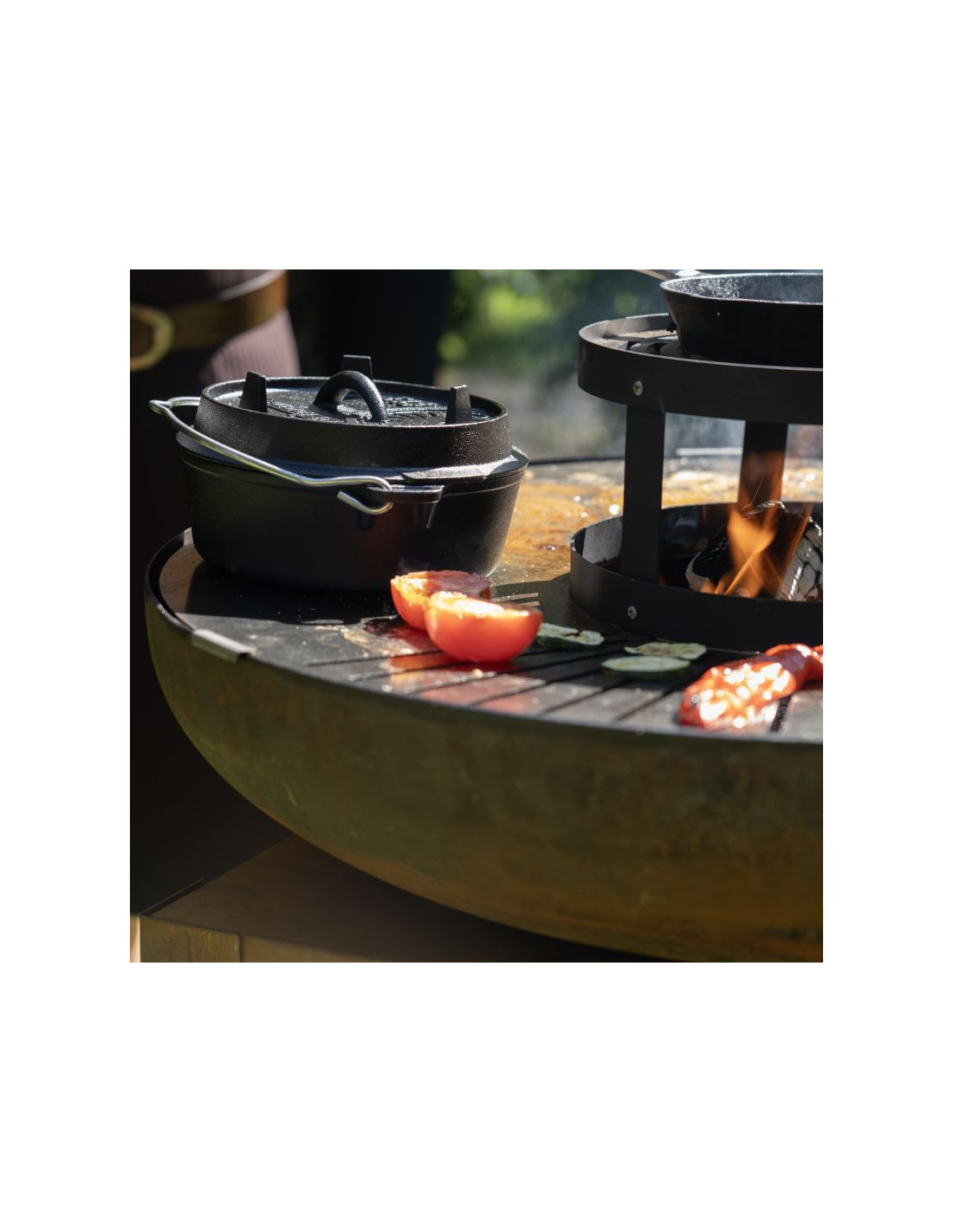 Bakka HEAT Outdoor Living to wielofunkcyjna kuchnia ogrodowa i palenisko w jednym. Centralnym elementem zestawu jest stalowa misa o średnicy 80 cm z naturalnym efektem rdzy, wyposażona w płaską planchę oraz ruszt grzewczy, umożliwiający przygotowywanie potraw bezpośrednio nad ogniem.