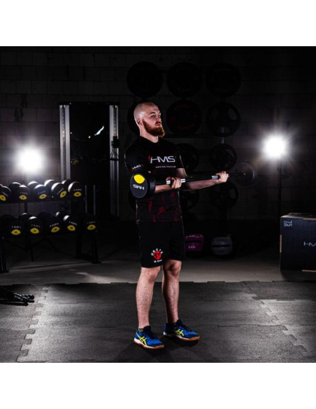 Sztanga / gryf stały GSG HMS usatysfakcjonuje nawet najbardziej wymagającego amatora sportów siłowych. Gryf wykonany został z wysokiej jakości hartowanej stali chromowanej. Posiada on radełkowaną część chwytną, która umożliwia pewny chwyt. Obciążenia pokryte są gumową powłoką wysokiej jakości.